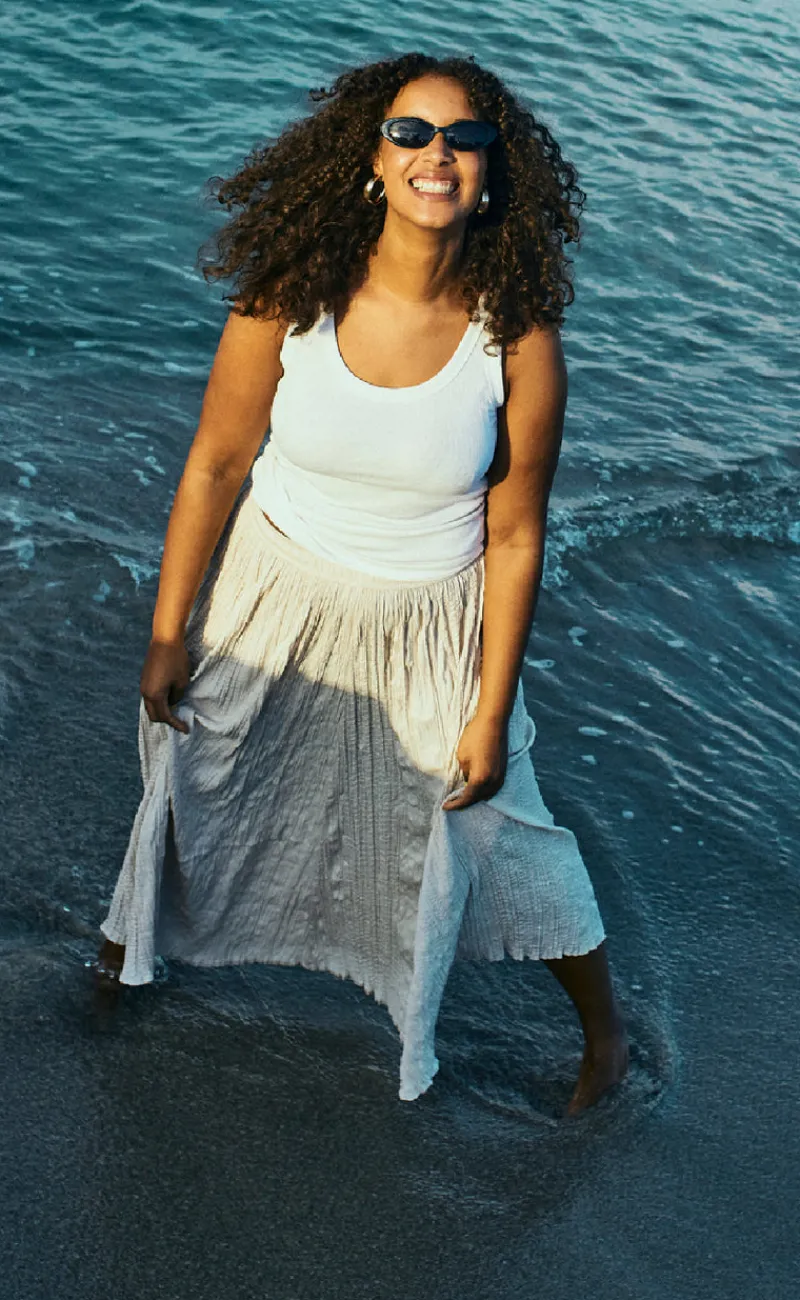 Flot og cool nederdel fra Freequent i beige.