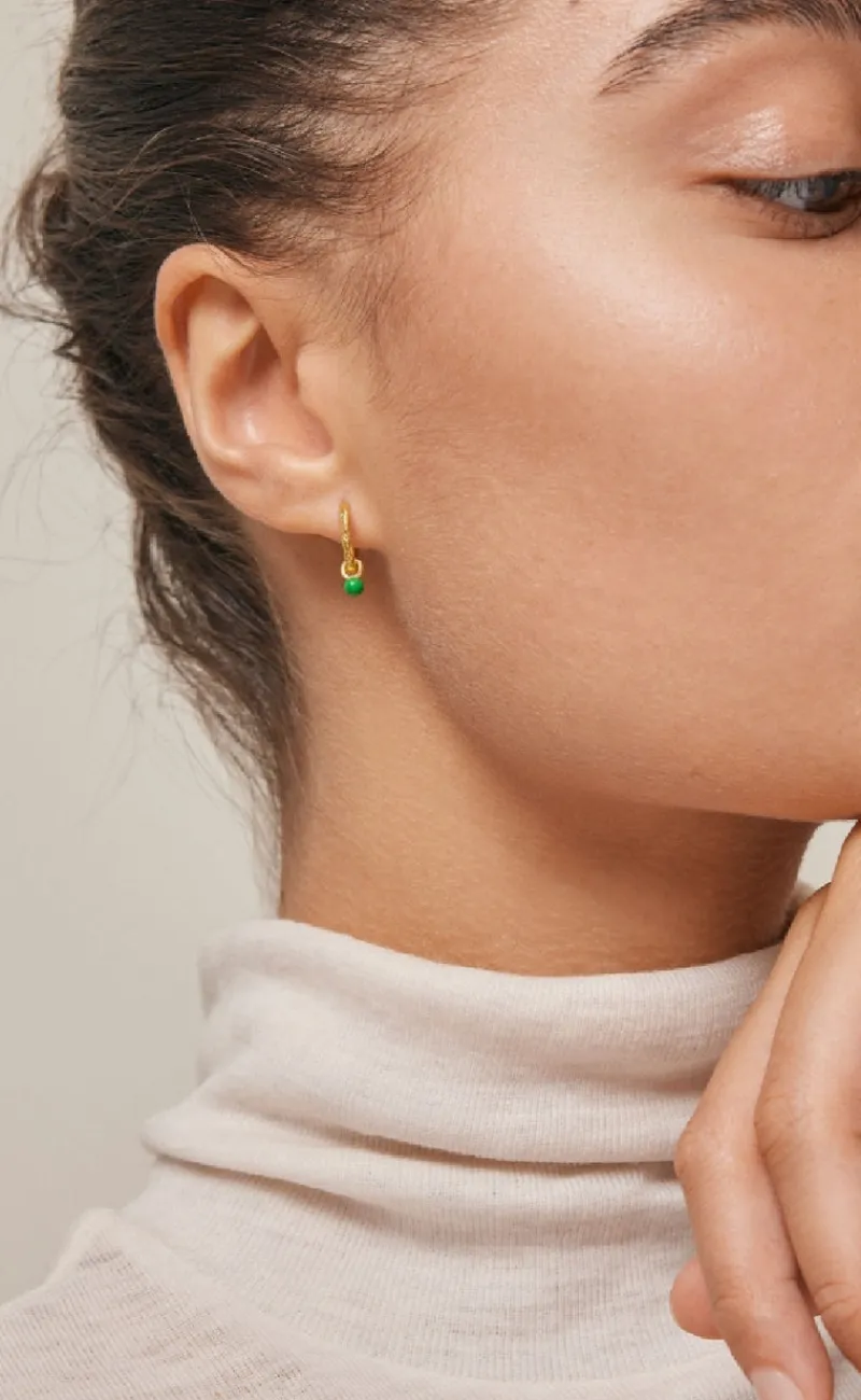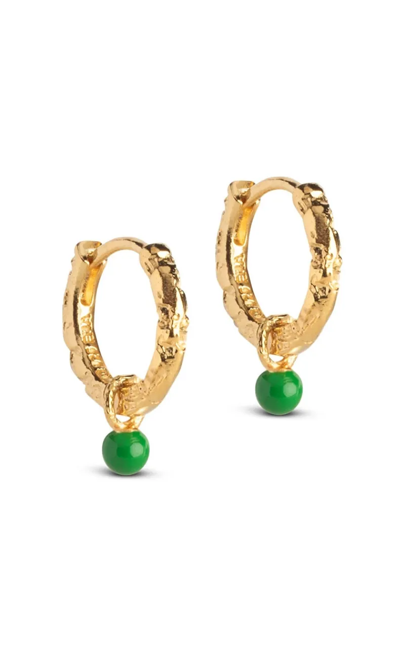 Flotte hoops fra Enamel Copenhagen I guld med en lille, grøn emalje kugle.