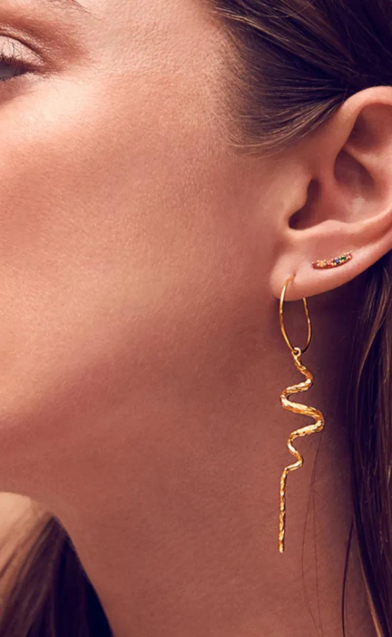 Simple Maanesten øreringe i guld, med et slange inspireret design.
