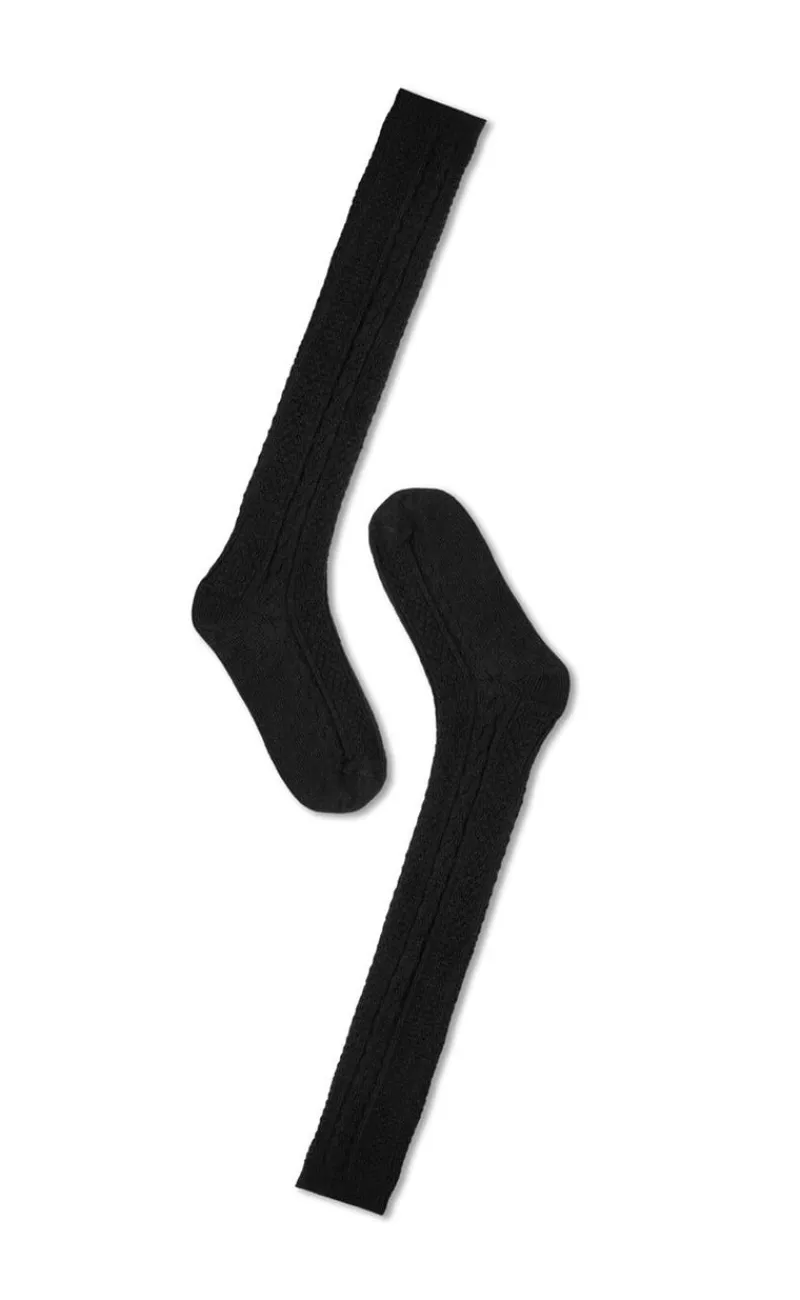 Knæhøje strømper fra Oroblu i sort, i et flettet mønster.