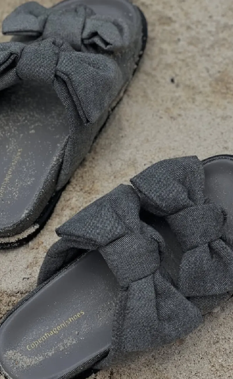Disse sandaler er i grå denim og har 2 sløjfer.