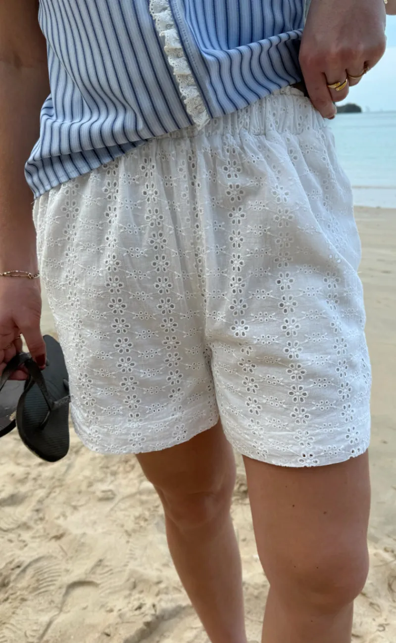 Smukke shorts fra INA Copenhagen i hvid broderie anglaise.