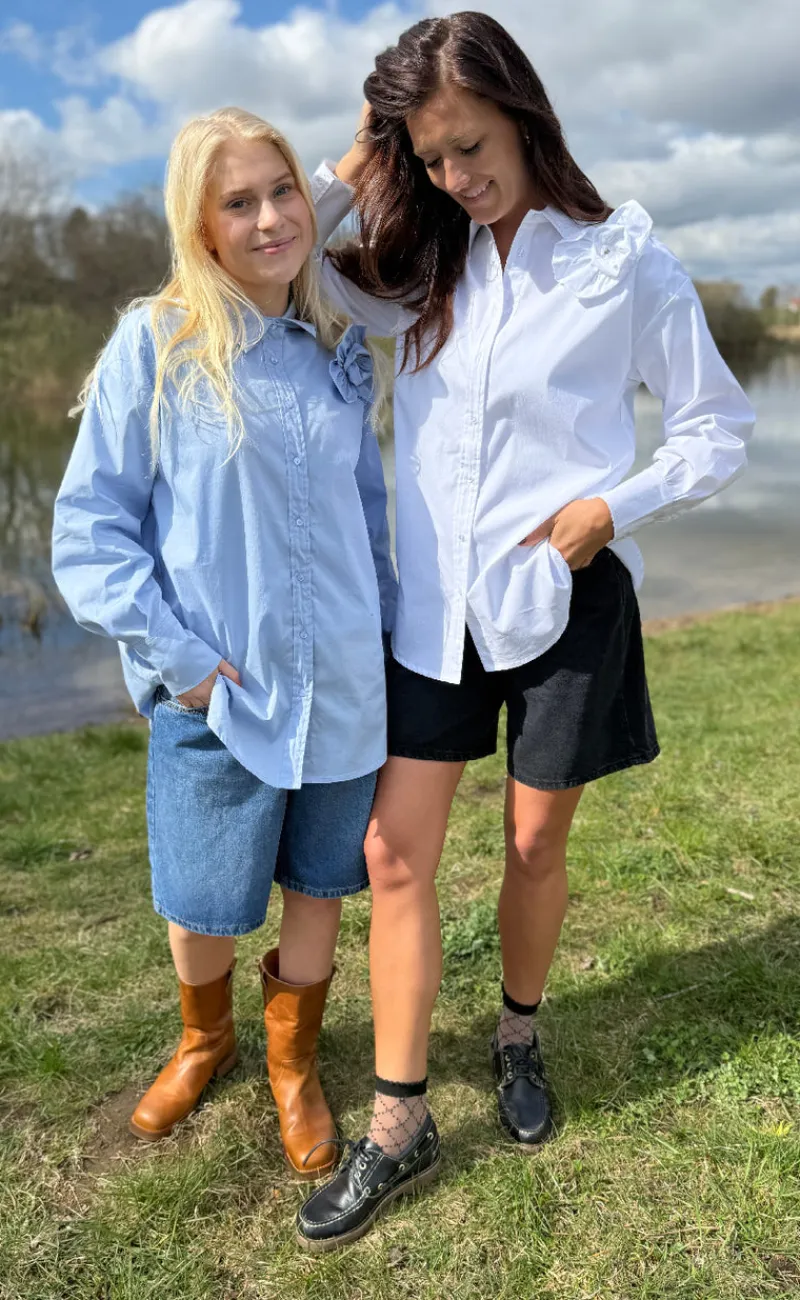 Cool skjorte fra Luxzuz i hvid med en smuk aftagelig blomst ved skulderen.