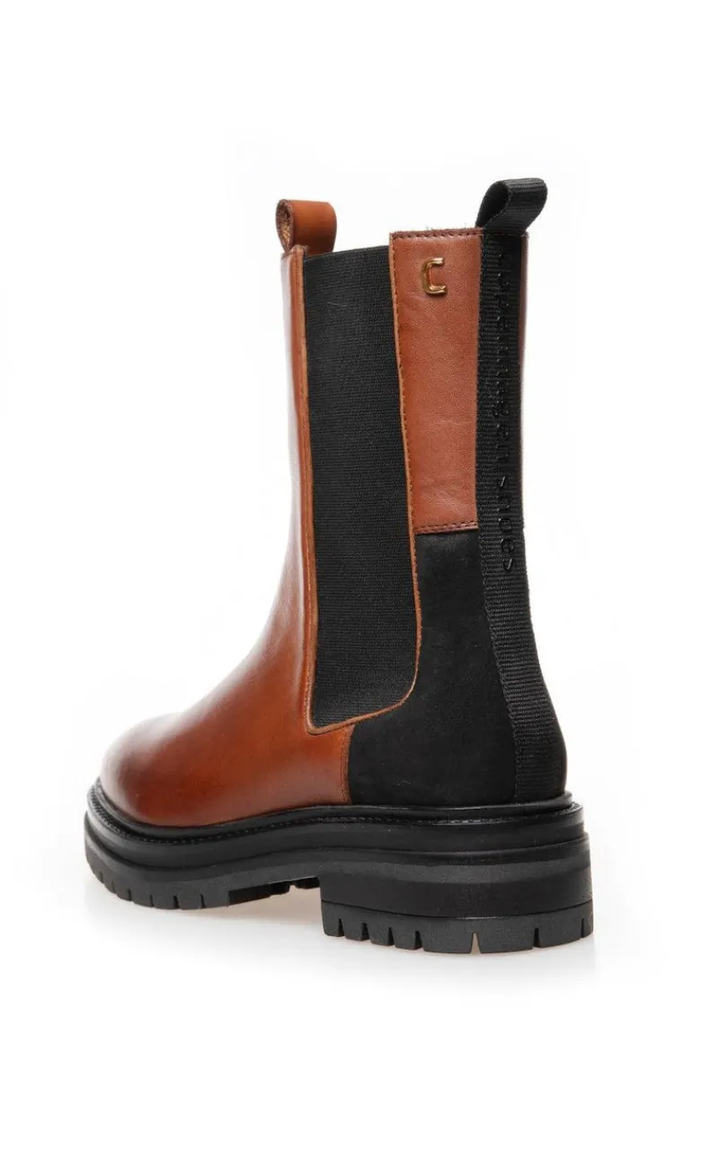Støvlen er fremstillet i et blødt læder og har elastik på begge sider.