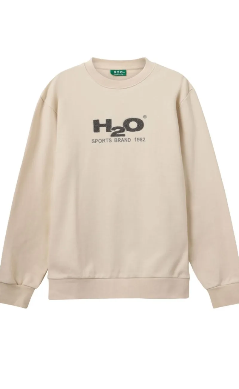 Denne sweatshirt er beige, og har det velkendte logo på brystet.