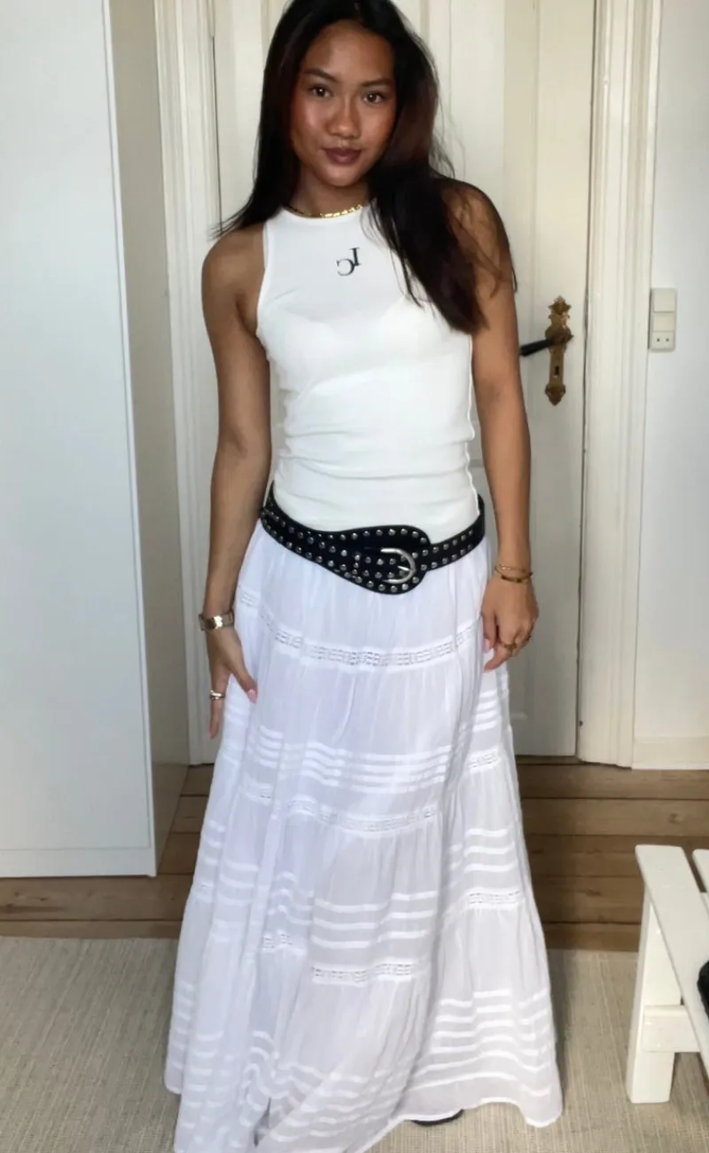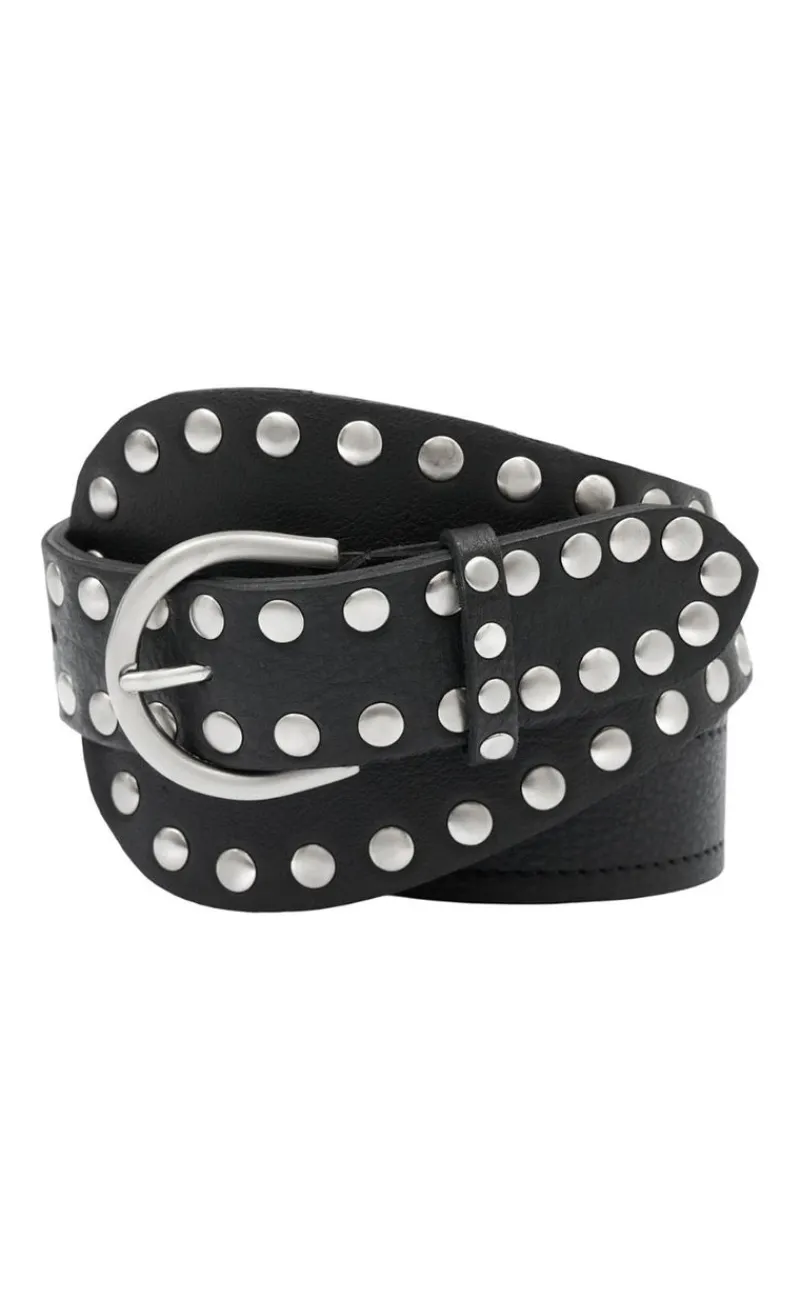 Cool skindbælte i sort med sølv nitter.