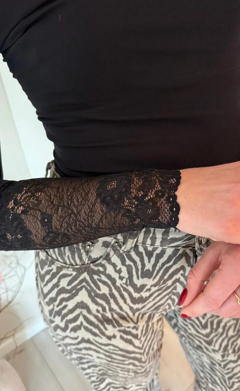 Yndig bluse fra Tim & Simonsen med blonder på ærmer samt halskrave.