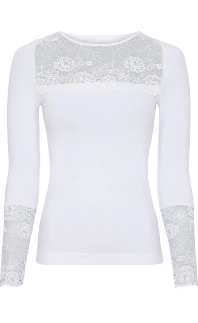 Blusen har du de flotteste blondedetaljer ved brystet og ærmerne.