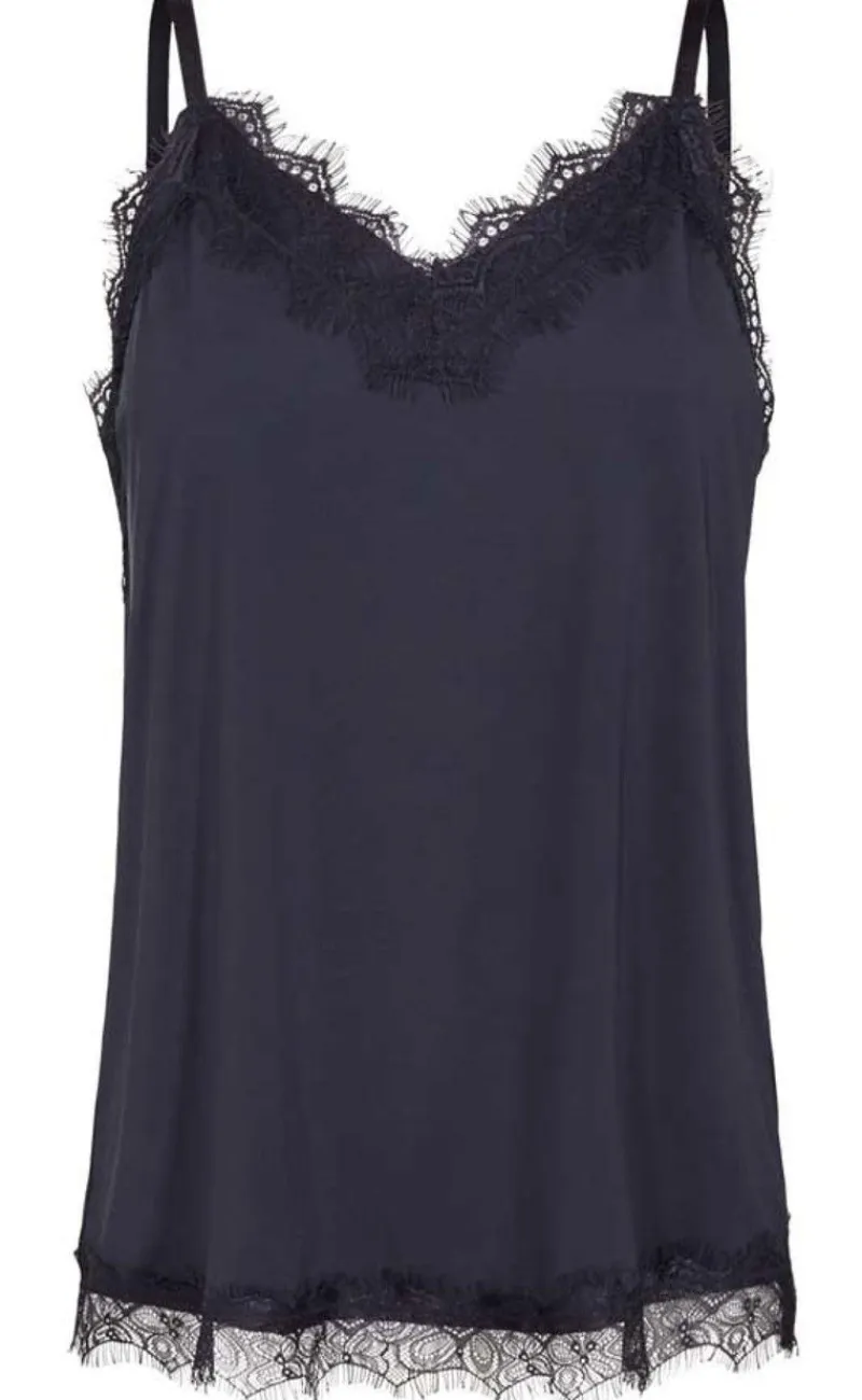 Fin top fra Freequent med tynde stropper og smukke blondedetaljer, som gør toppen meget elegant.