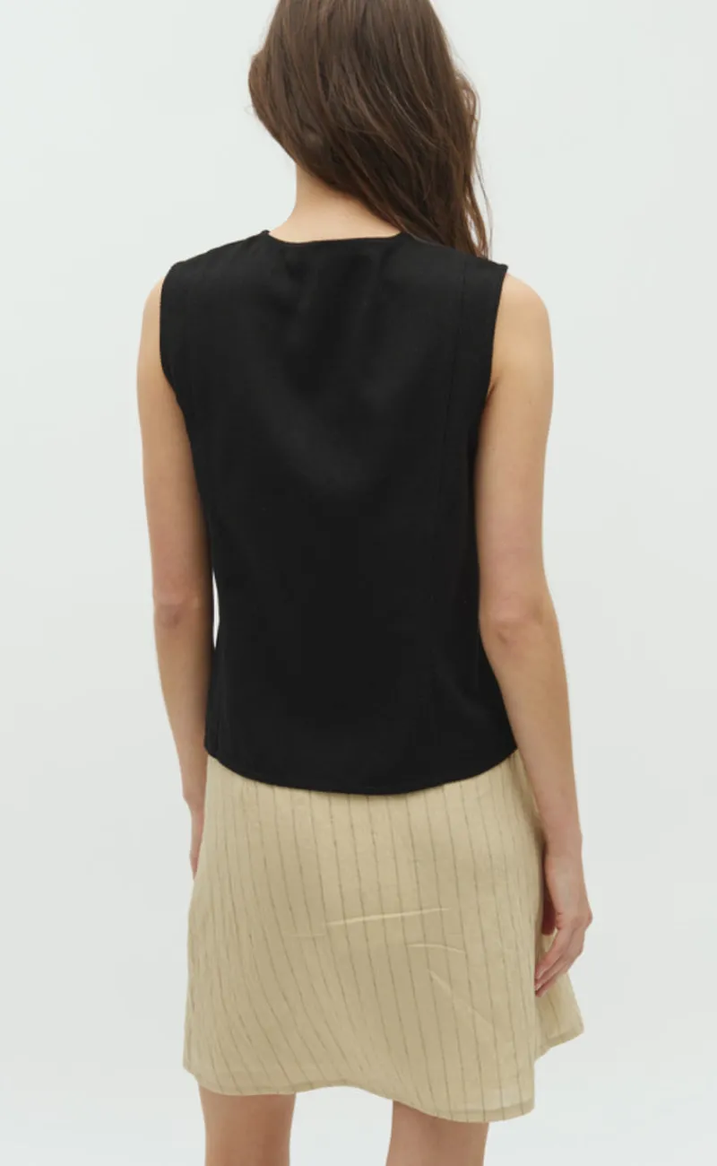 Toppen har ingen ærmer med fine detaljer.