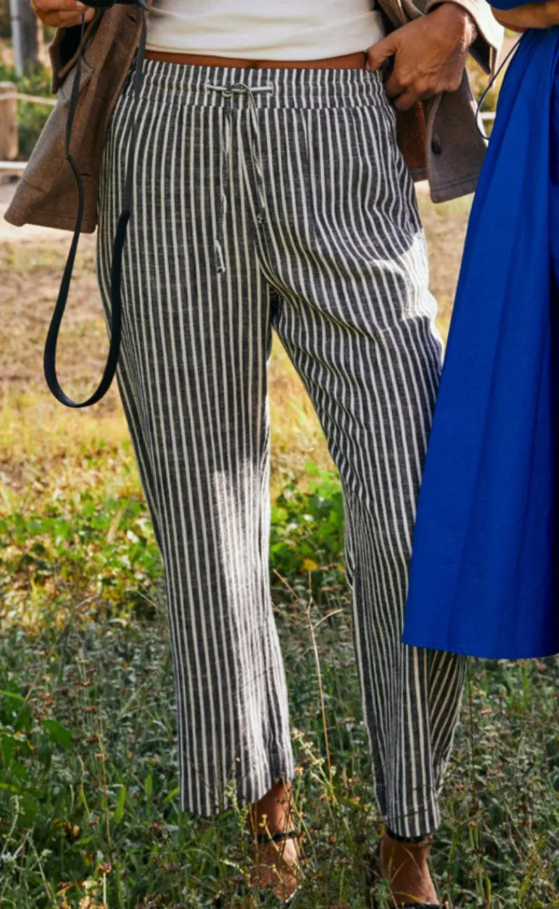 Lækre, lange hør-bukser fra Freequent i med striber.