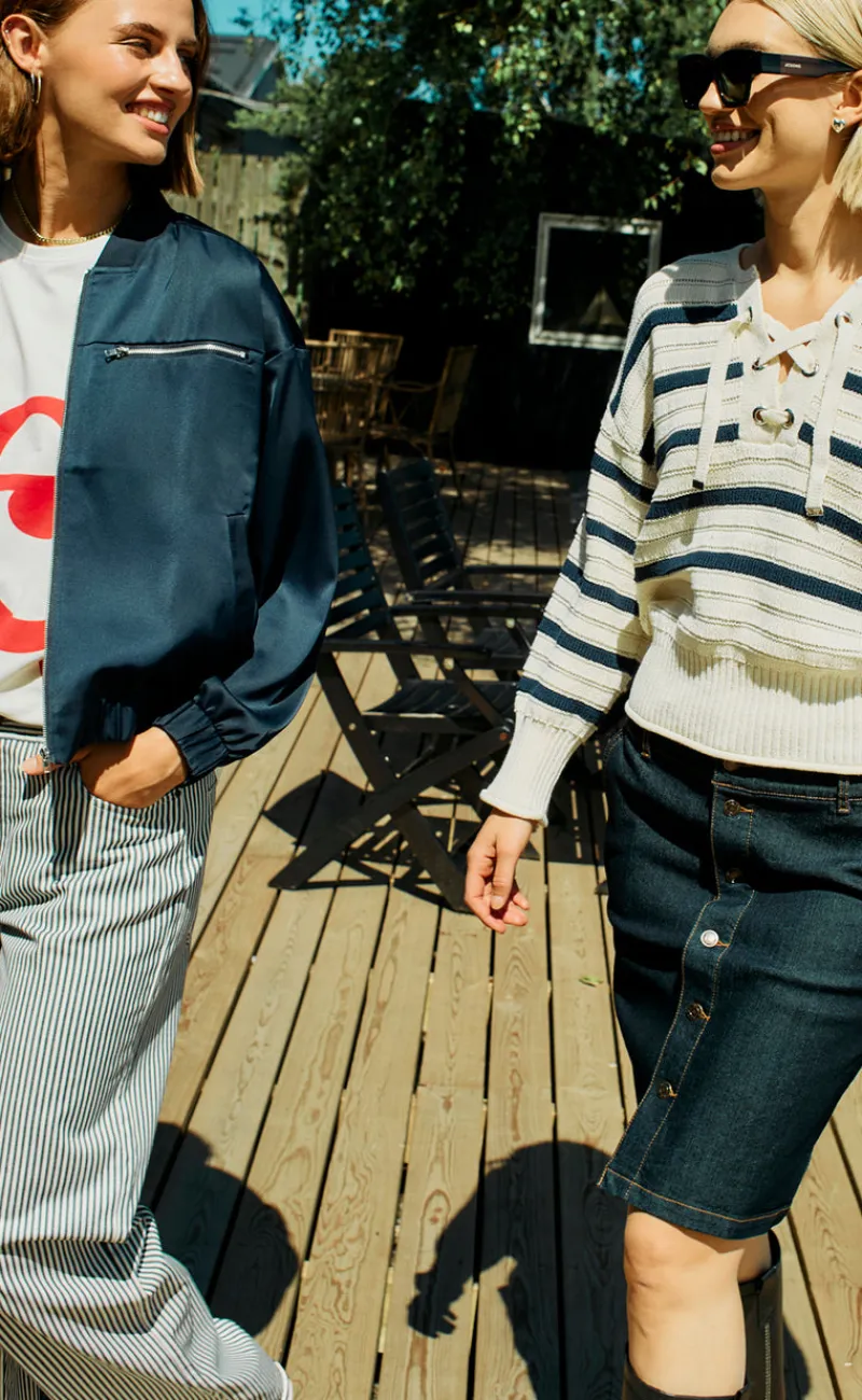 Moderne stribede bukser fra Freequent i nogle flotte farver.