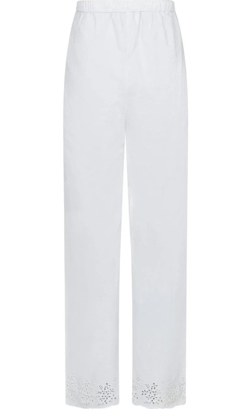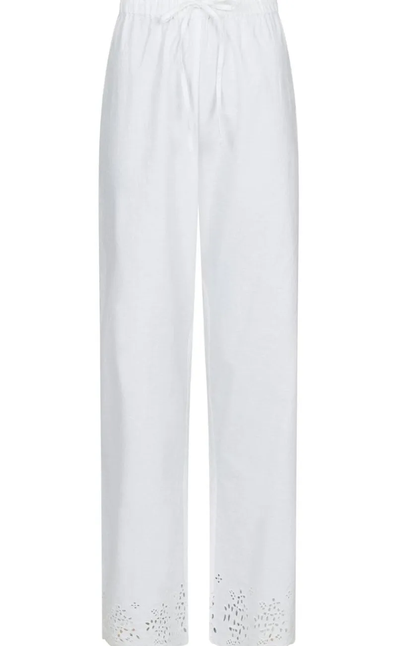 Bukserne har et straight fit, elastik i taljen og broderi detalie forneden.