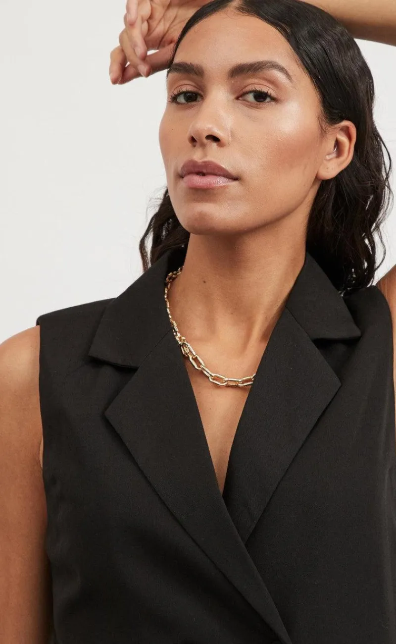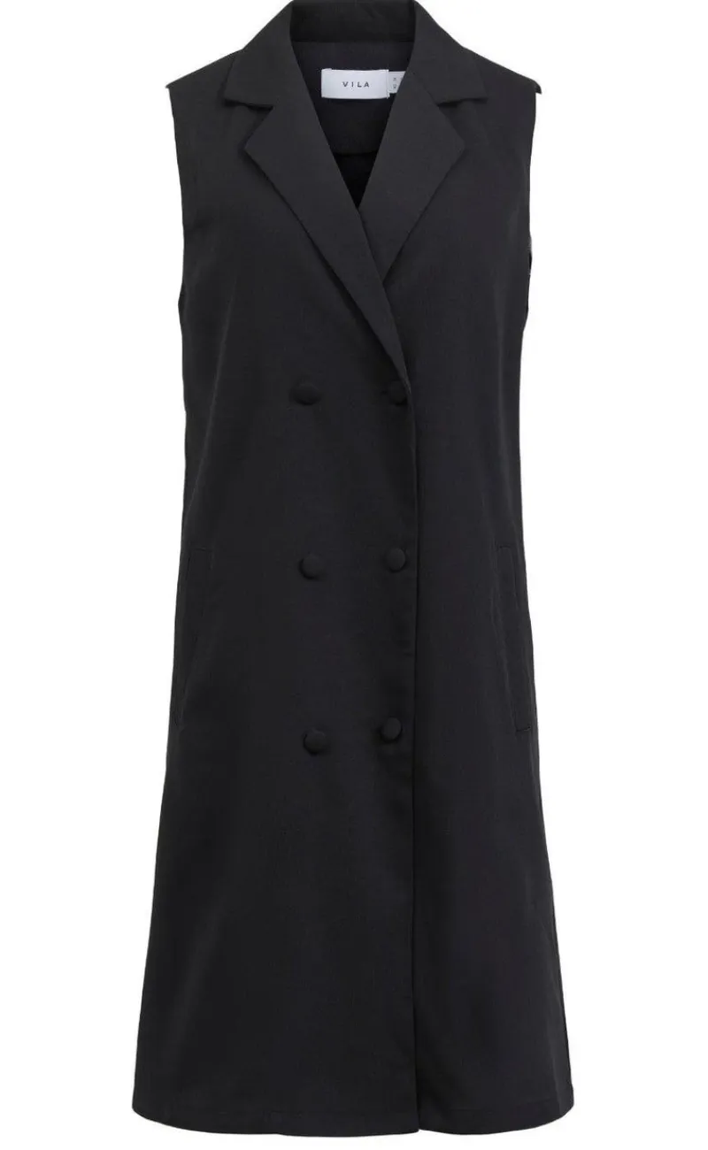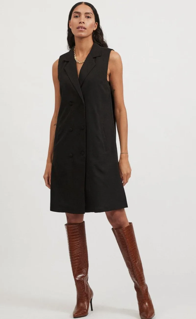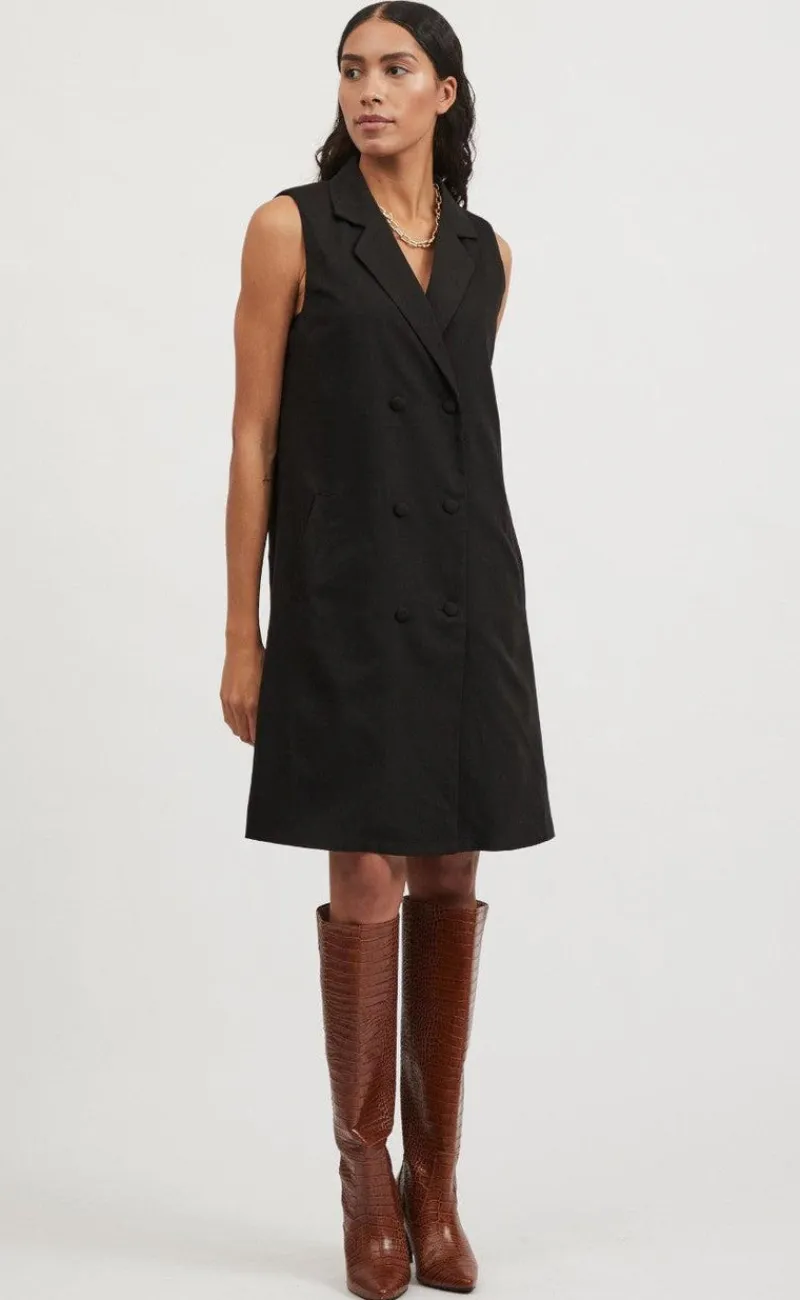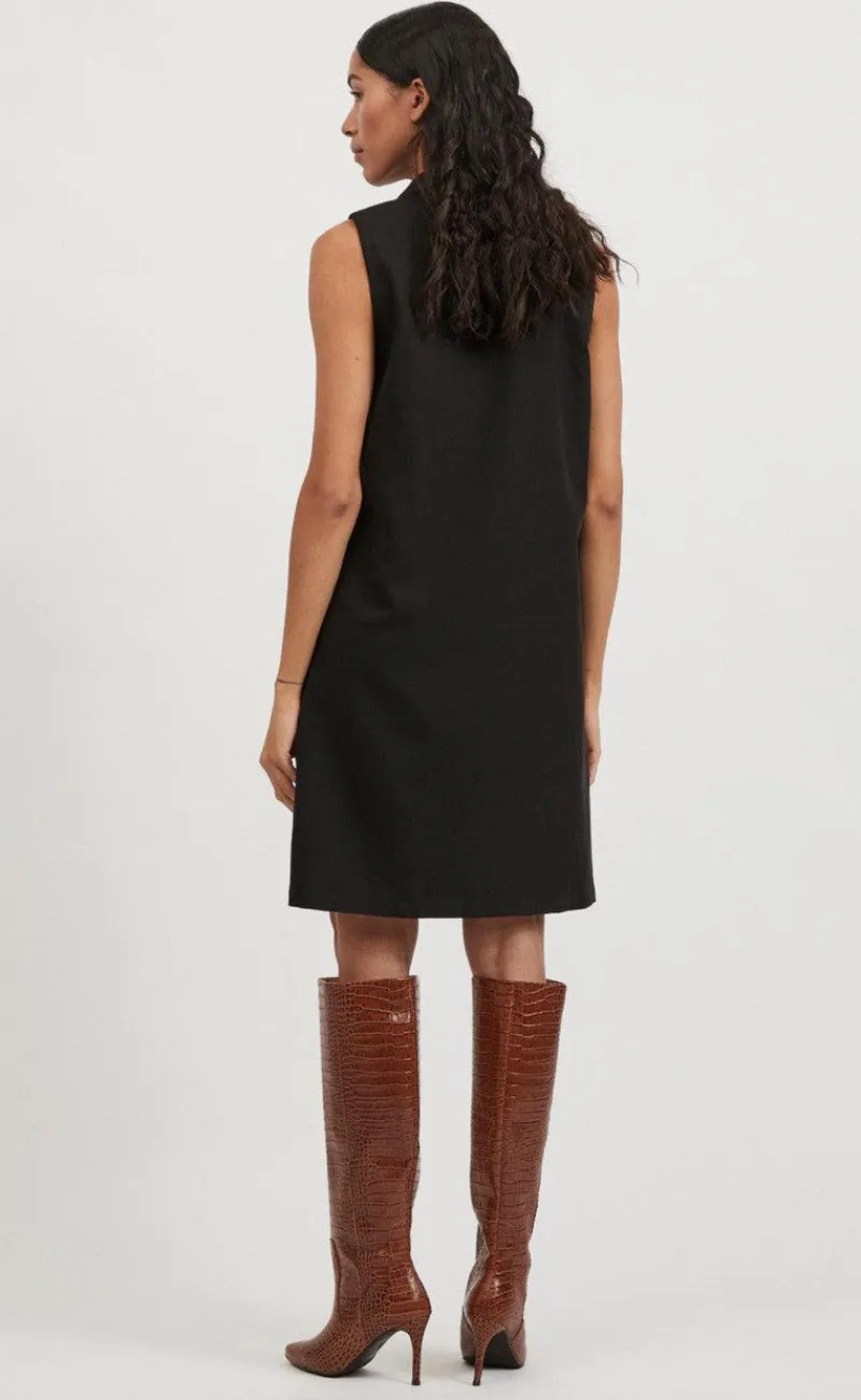 Flot kjole fra Vila i sort med gennemgående knapper.
