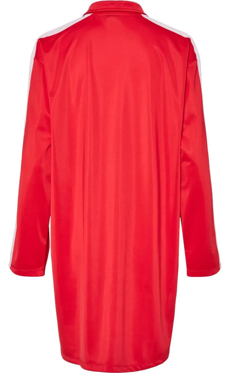 Denne fine kjole fra Pieces kommer i en rød farve, med 3/4 lynlås samt lange ærmer.