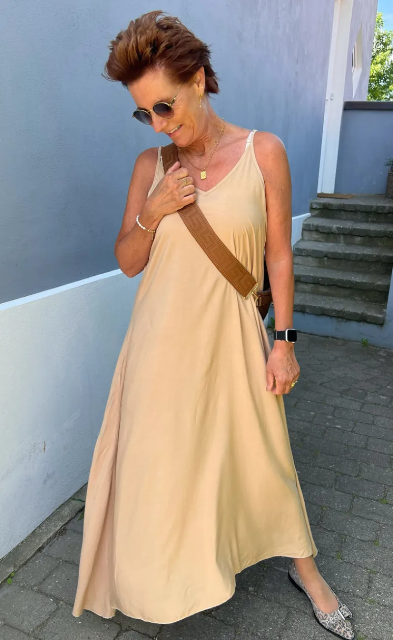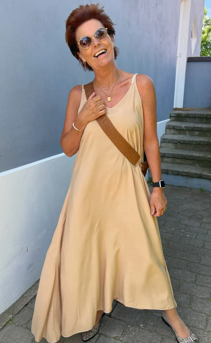 Flot kjole fra INA Copenhagen i camel.