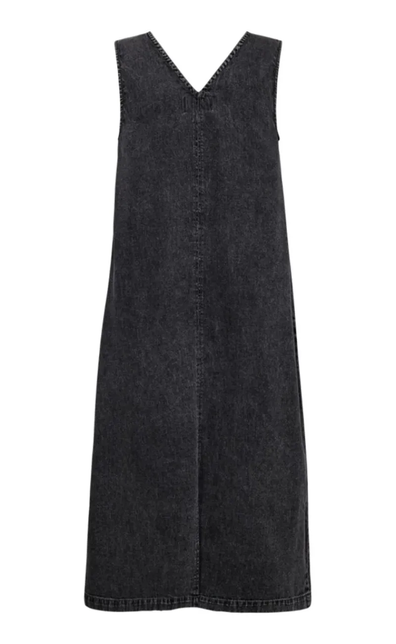 Cool grå denim kjole fra Freequent med v-hals og lommer i siden