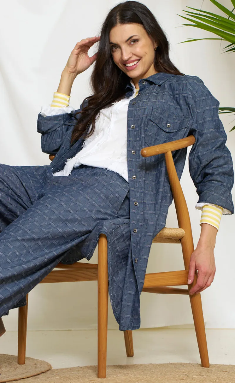 Flot kjole fra Marta Du Chateau i et blåt ternet print.