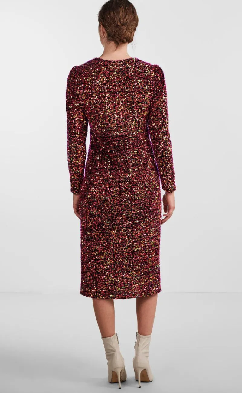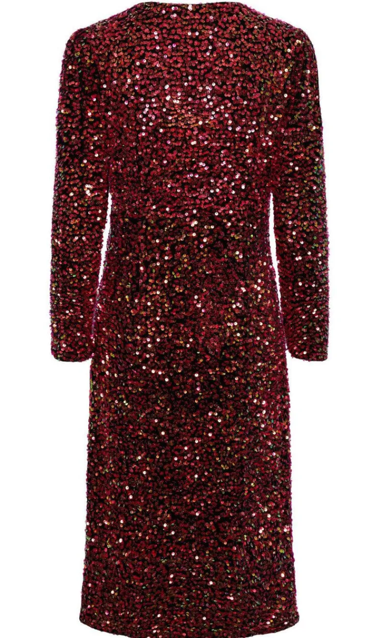 Festlig palliett kjole fra YAS i en mørkerød farve.