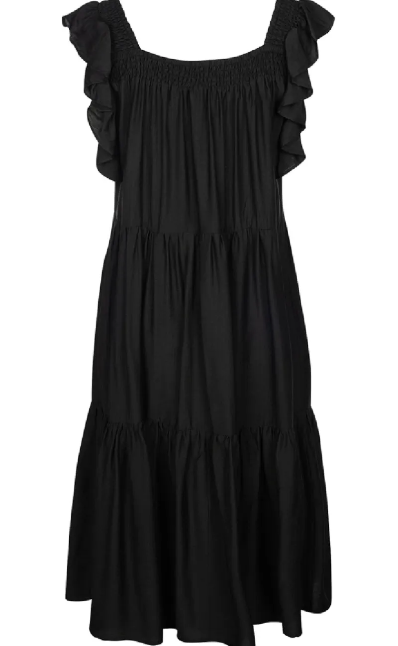 Lækker kjole fra Luxzuz i sort med flotte flæsedetaljer.
