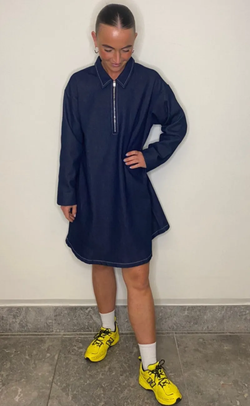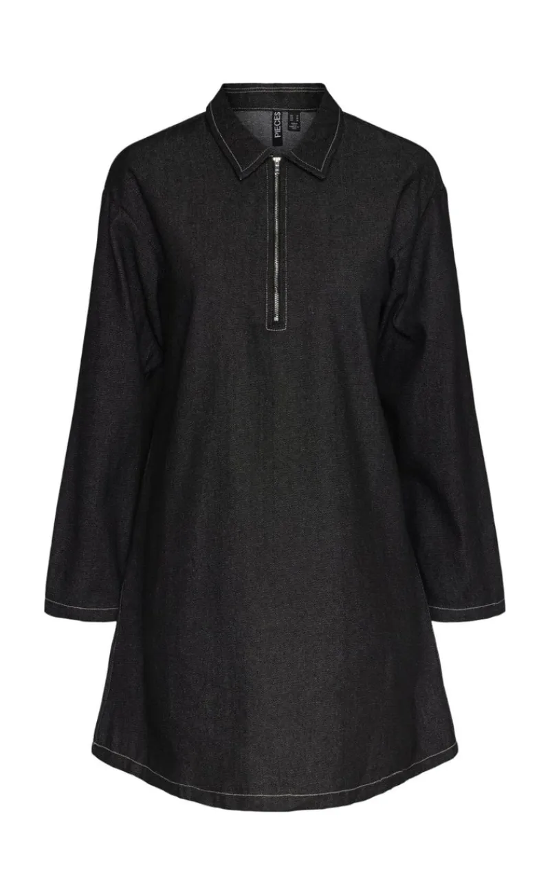 Smart denim kjole fra Pieces i sort med lynlås på fronten.