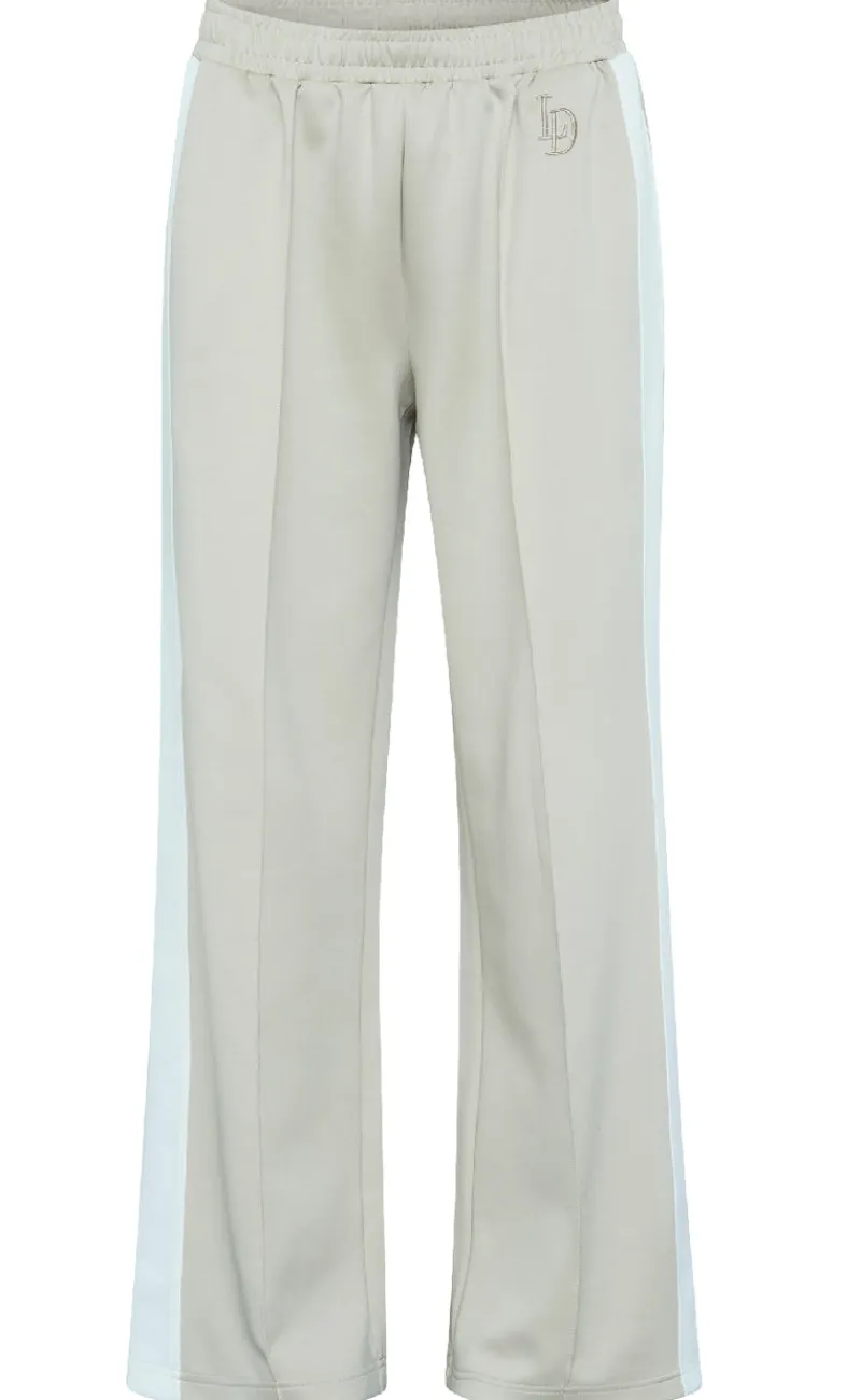 Flotte tracksuit bukser fra Love & Divine i beige, med en hvid stribe ned langs siden.