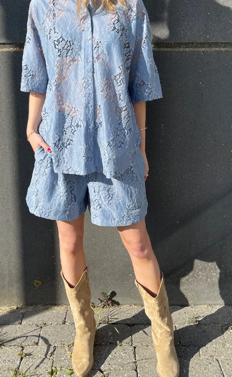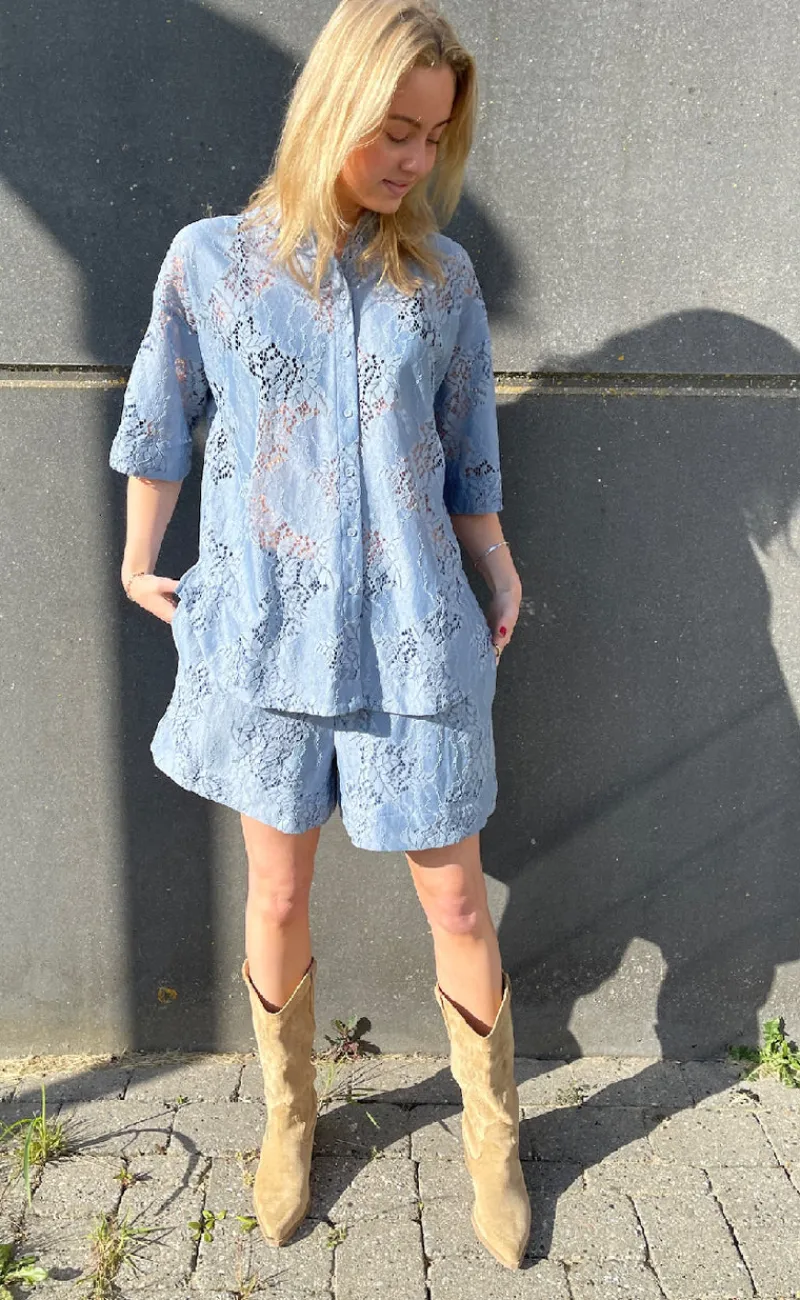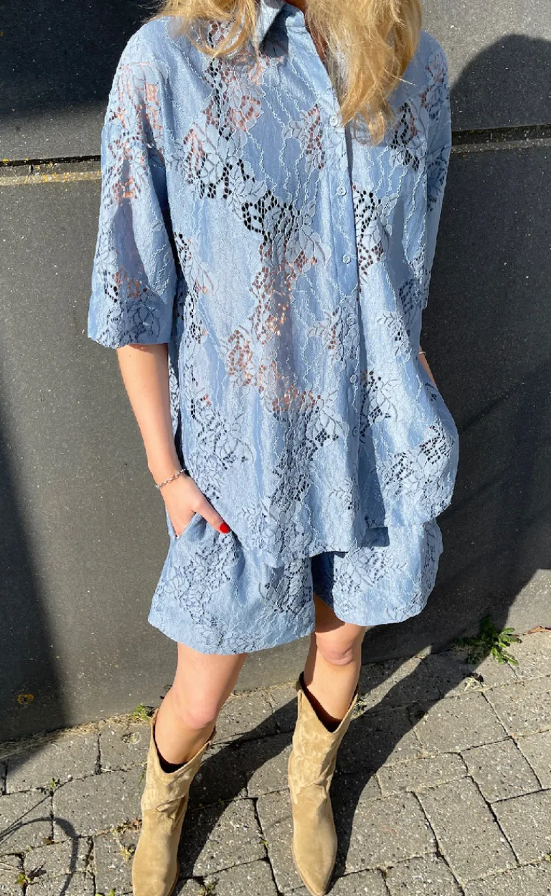 Lækker blondeskjorte fra Love & Divine i lyseblå.