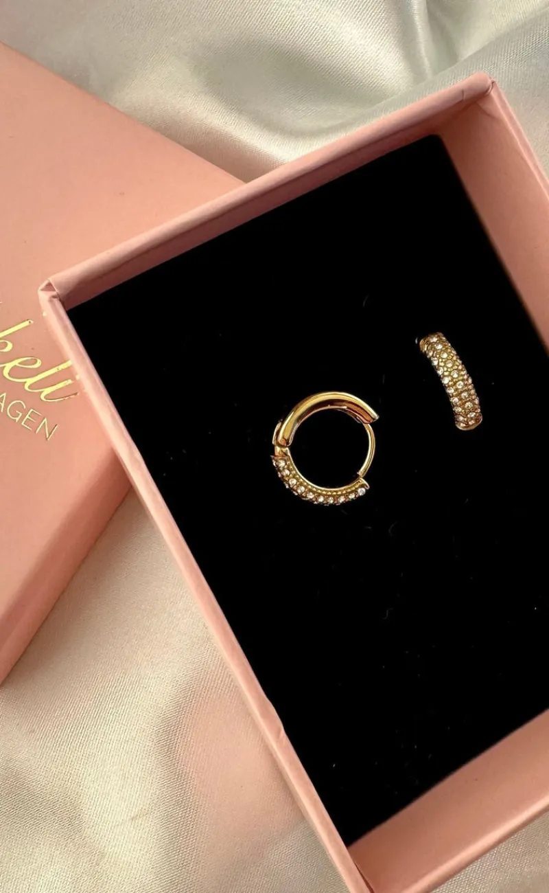Eksklusive hoops fra Smykkeli Copenhagen i 18k guldbelagt med små zirconia sten.