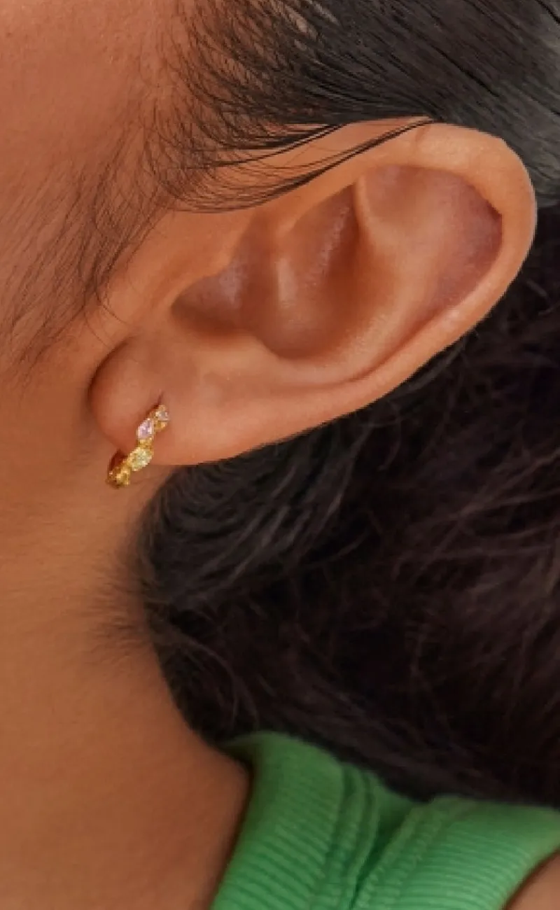 Søde øreringe fra ENAMEL Copenhagen i guld, med farverige detaljer.