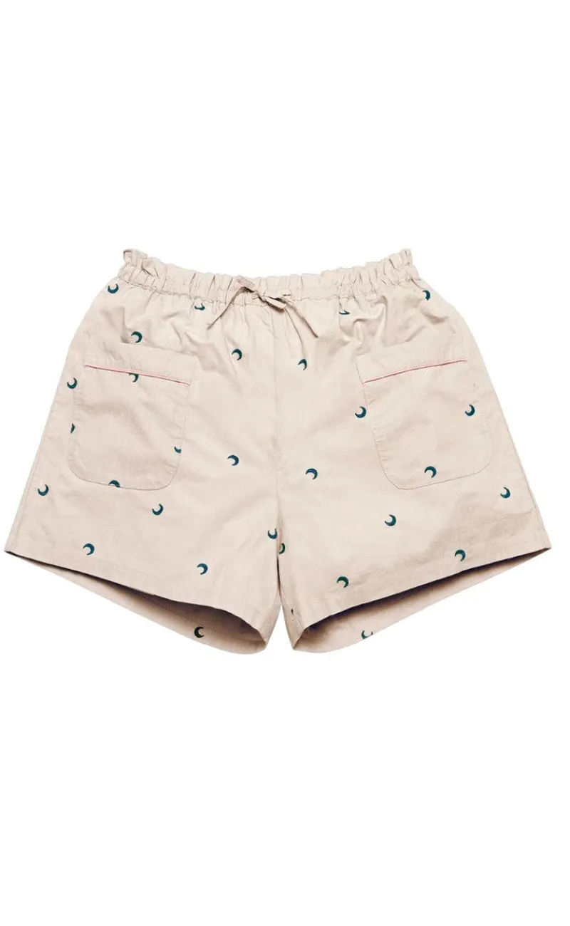 De fineste loungewear shorts fra Maanesten i beige, med et måne print.