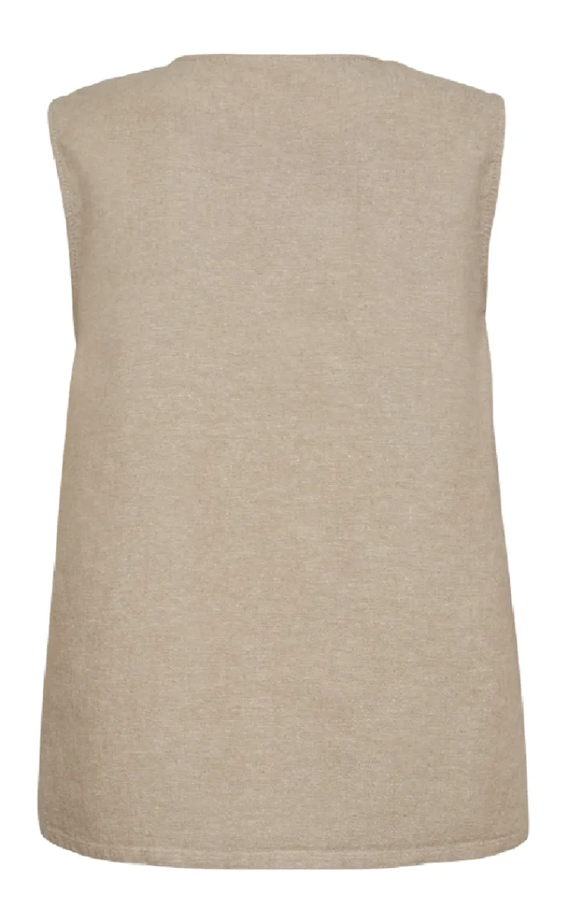 Sandfarvet top fra Freequent med en cool effekt fortil.
