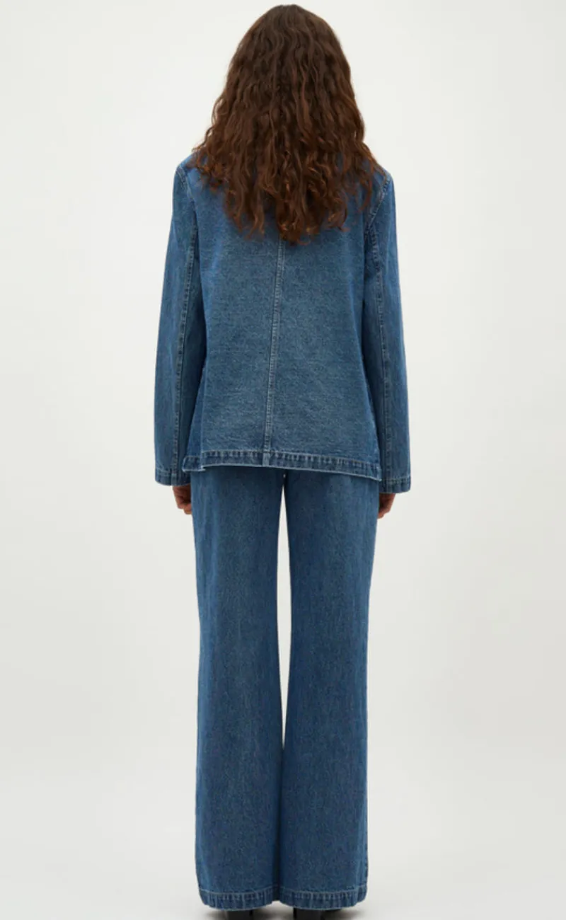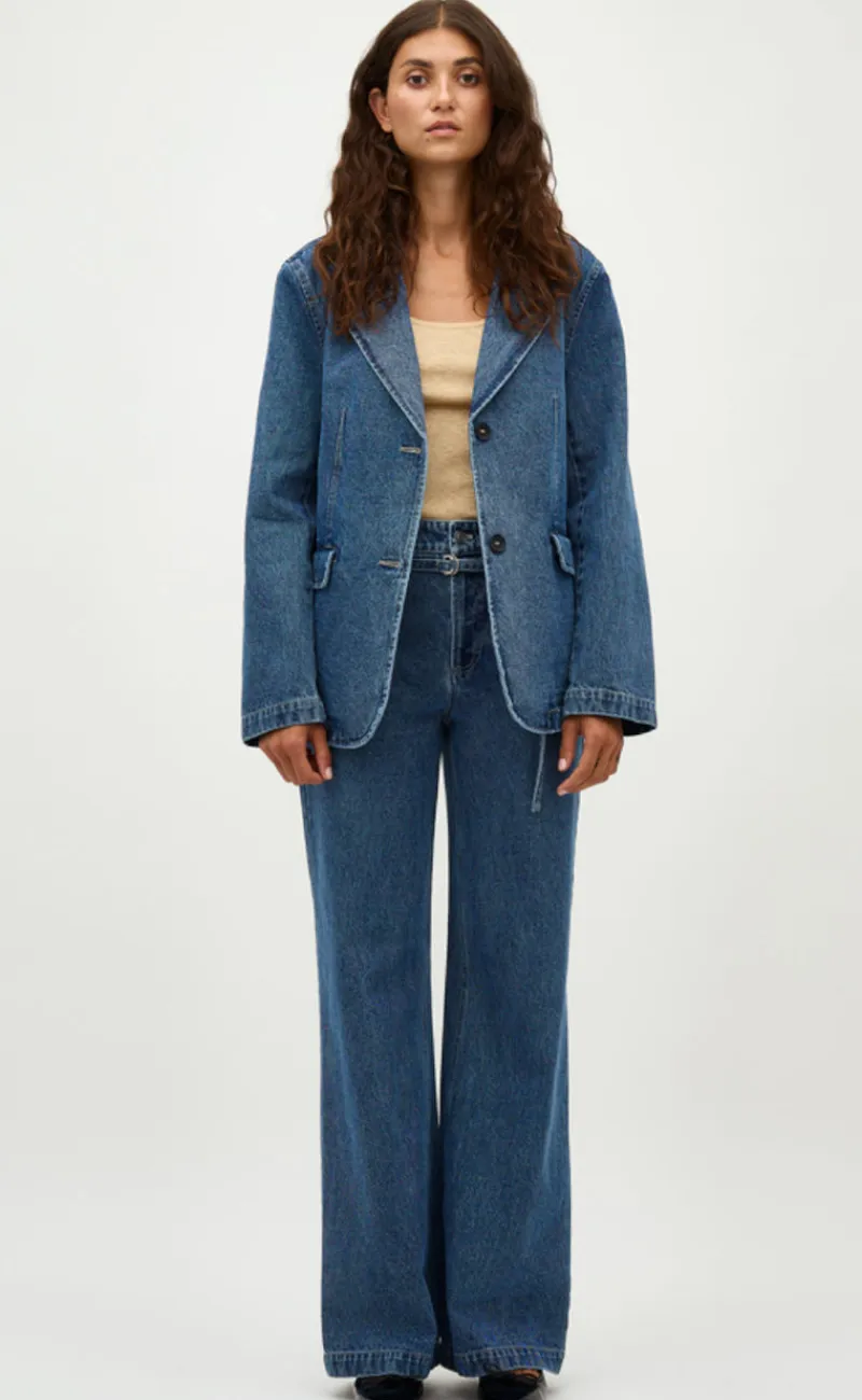 Flot og dejlig denim blazer fra Global Funk i en blå farve.