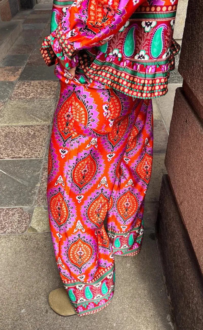 Flotte bukser fra Noella i et lyserødt print.