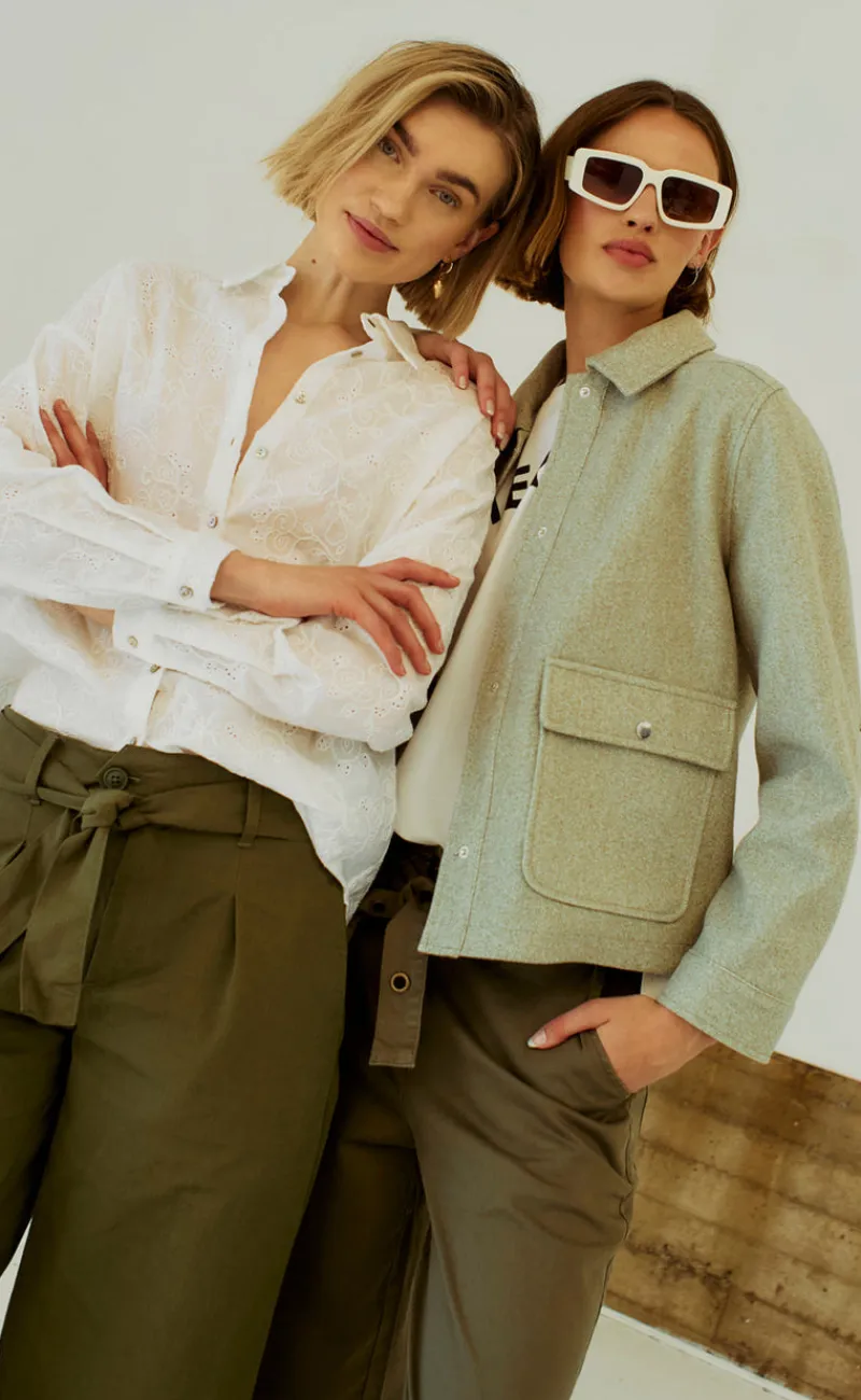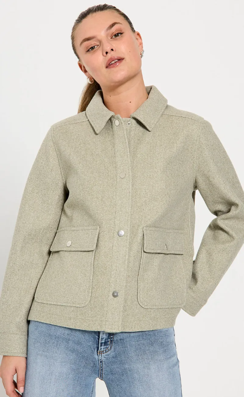 Fin overgangsjakke fra Freequent i en lysegrøn farve.