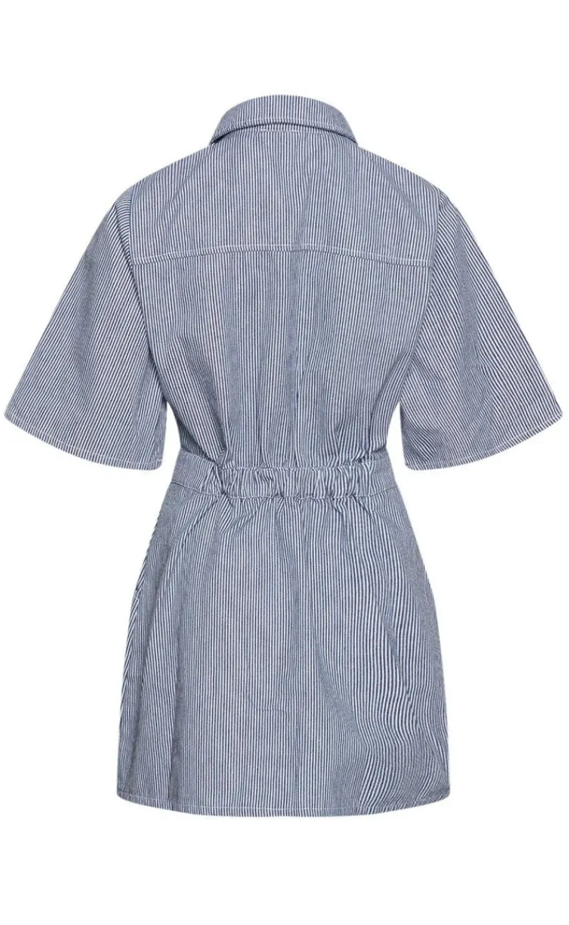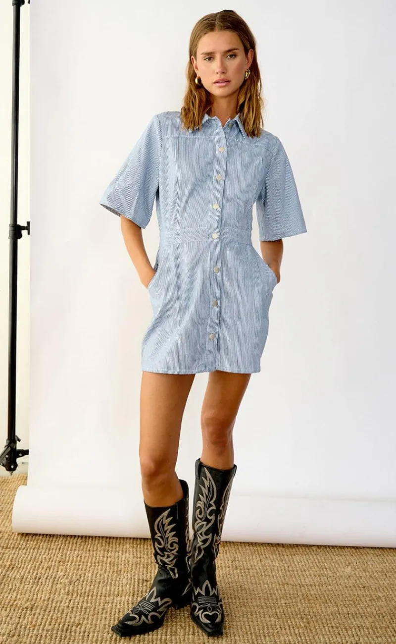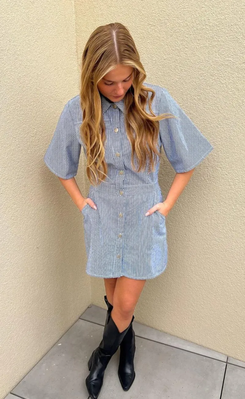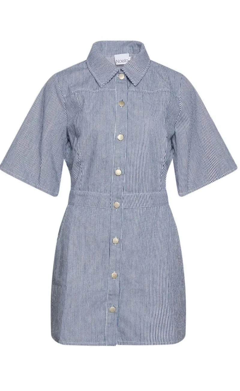 Smuk kjole fra Noella i lyseblå med hvide nålestriber, i en denim kvalitet.
