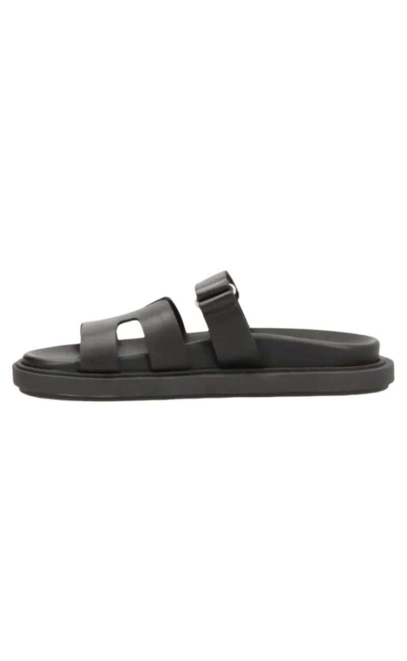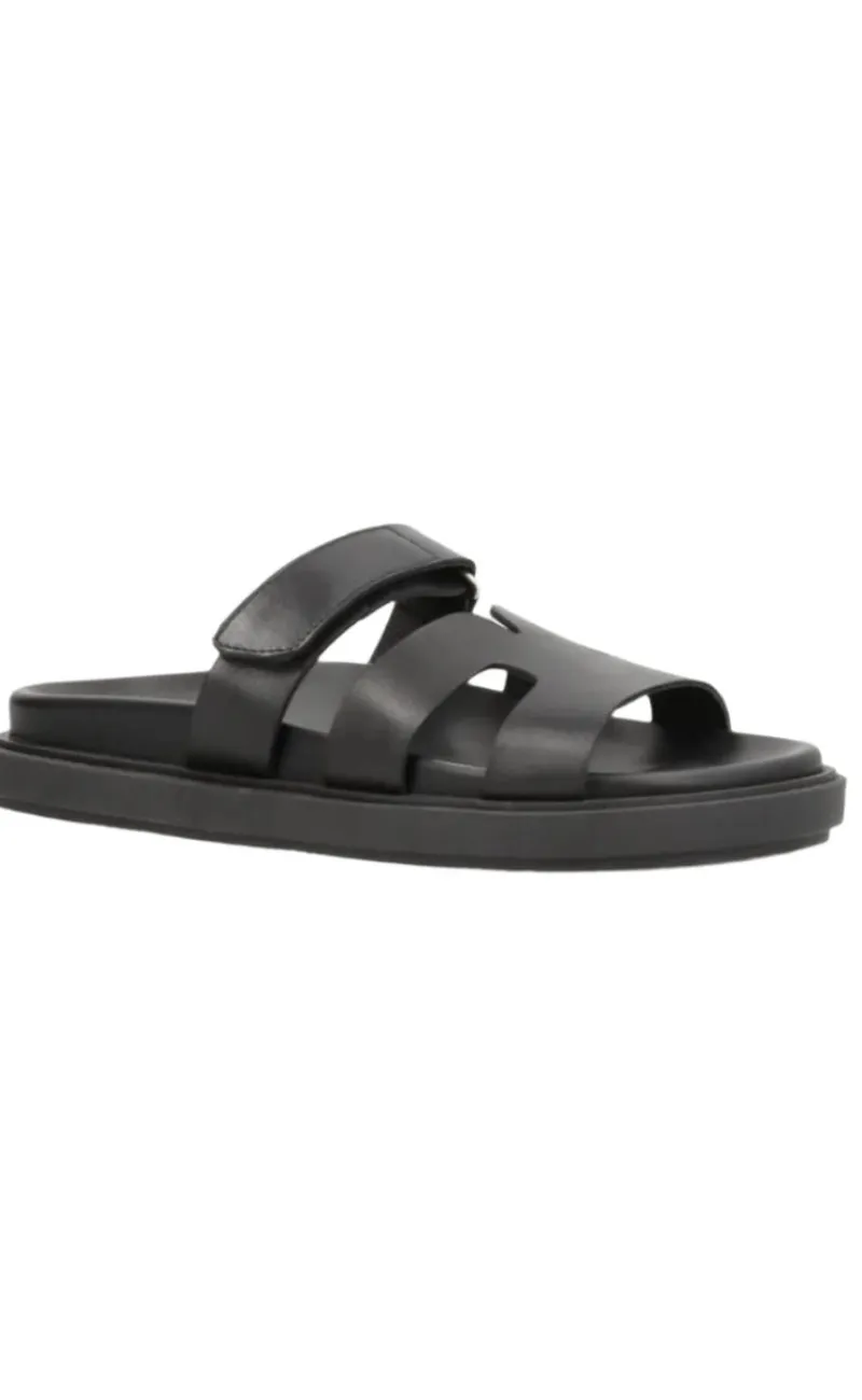 Disse sandaler har en sort behaglig bund, og sort velcro spænde hen over foden.