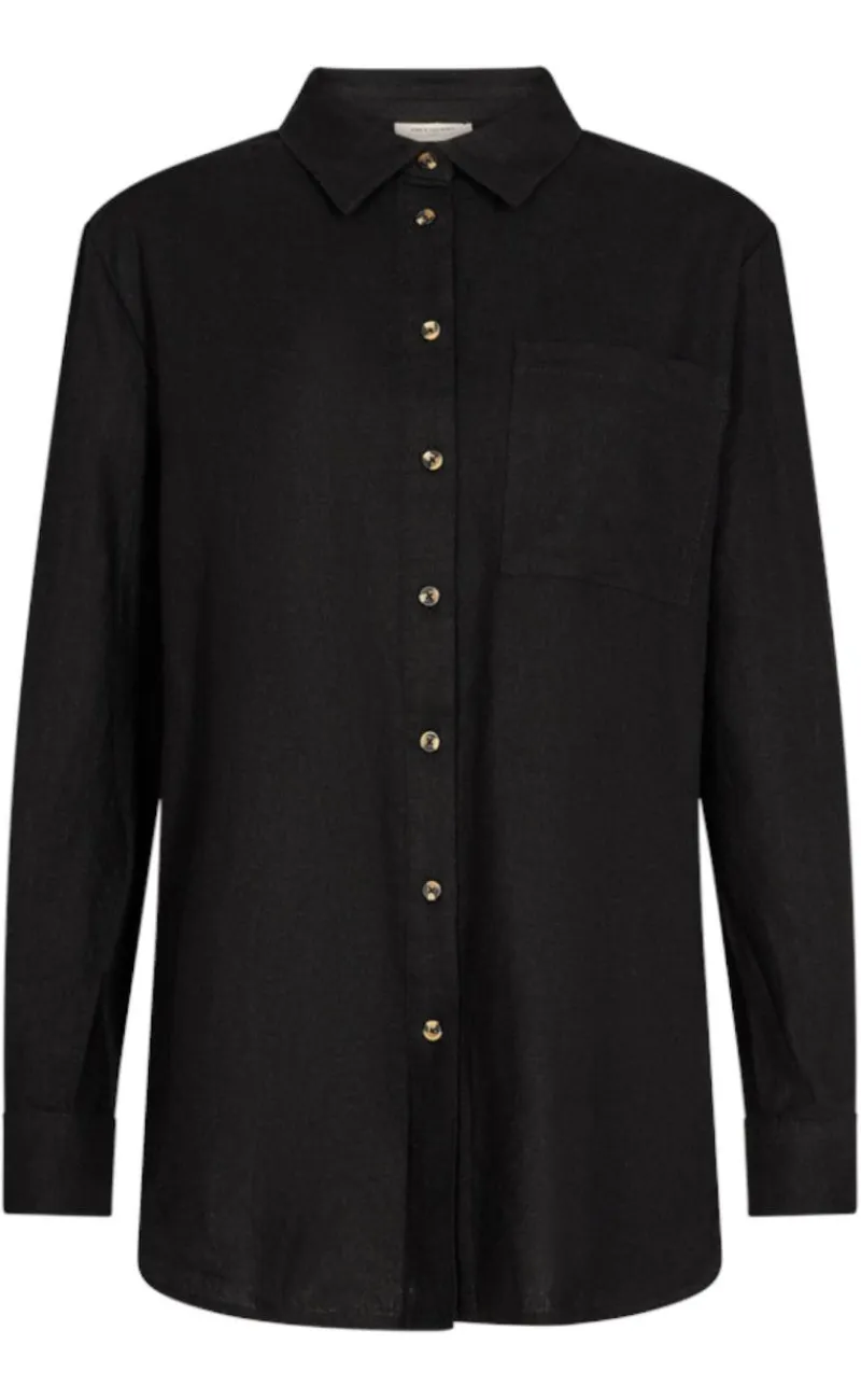Moderne hør-skjorte fra Freequent i sort.