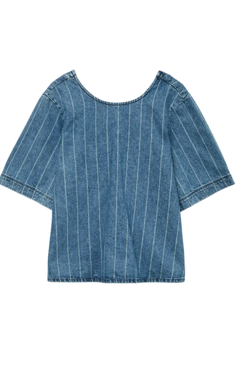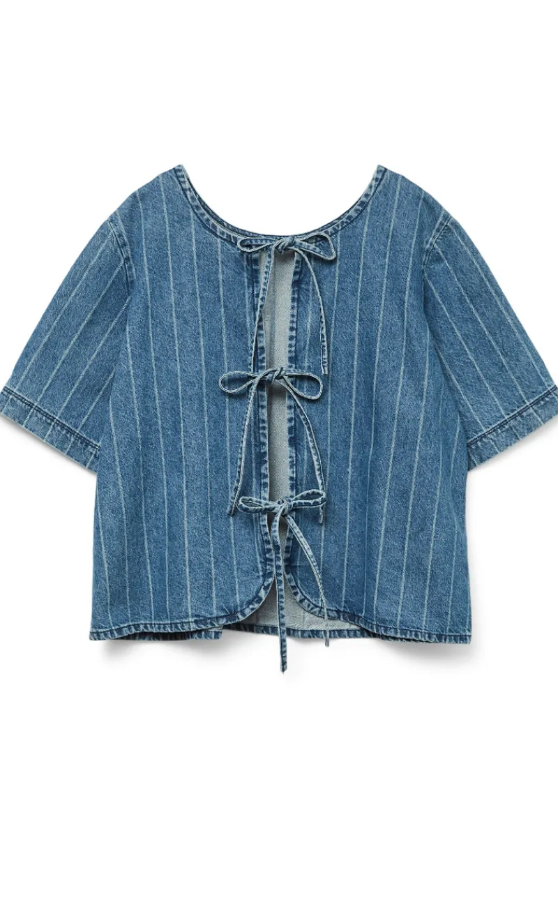 Sød denim skjorte fra Vero Moda med striber samt bindebånd fortil.