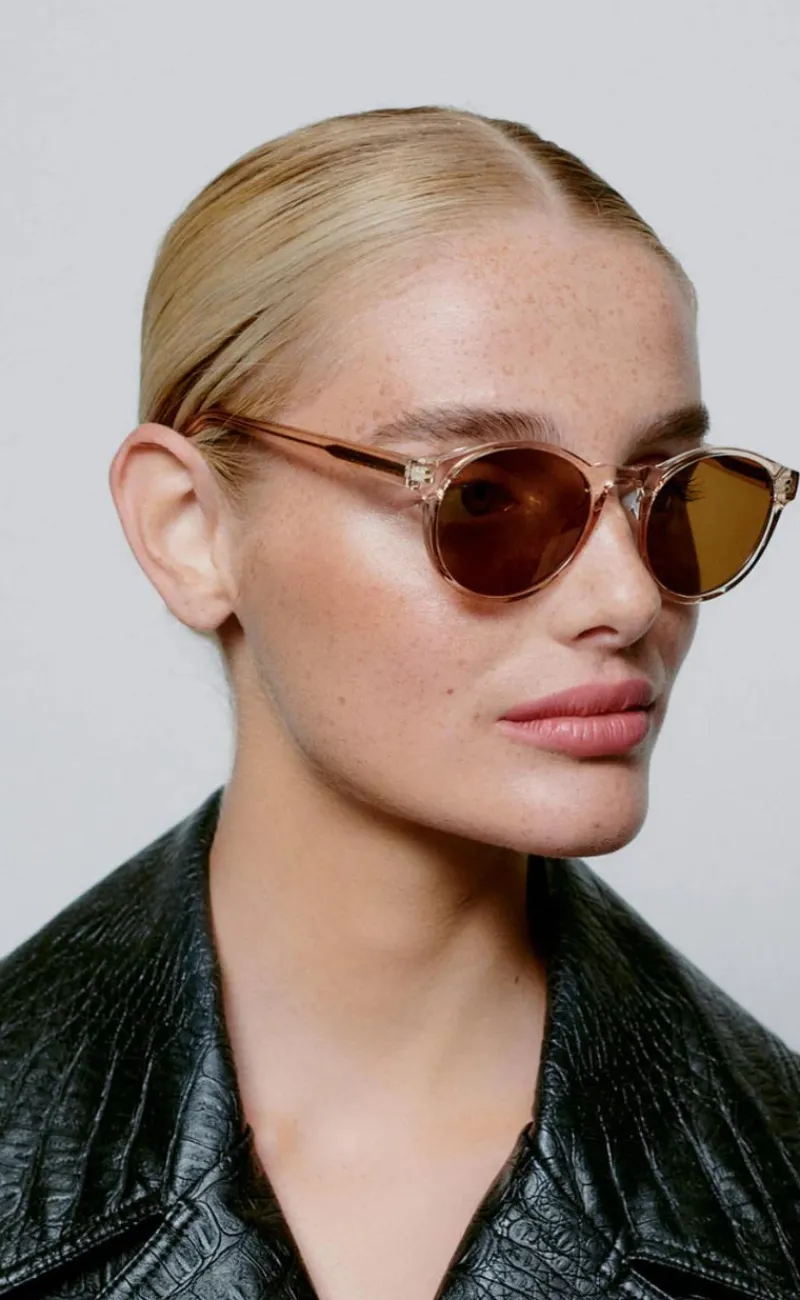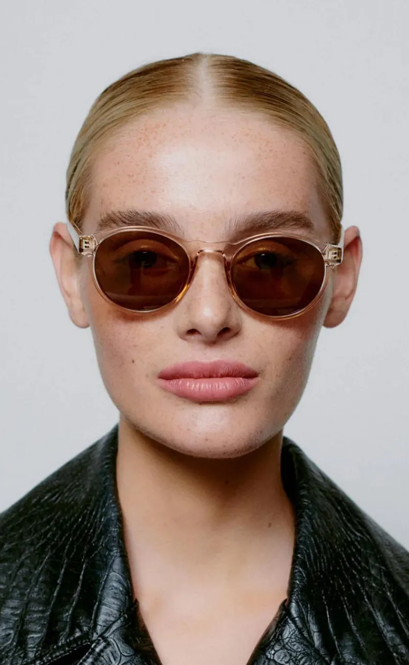 Seje solbriller i en støvet champagne farve.