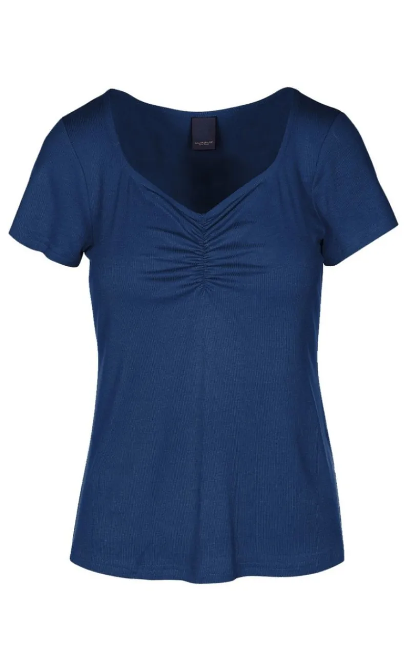 Sød t-shirt fra Luxzuz i navy blå i en ribbet kvalitet.
