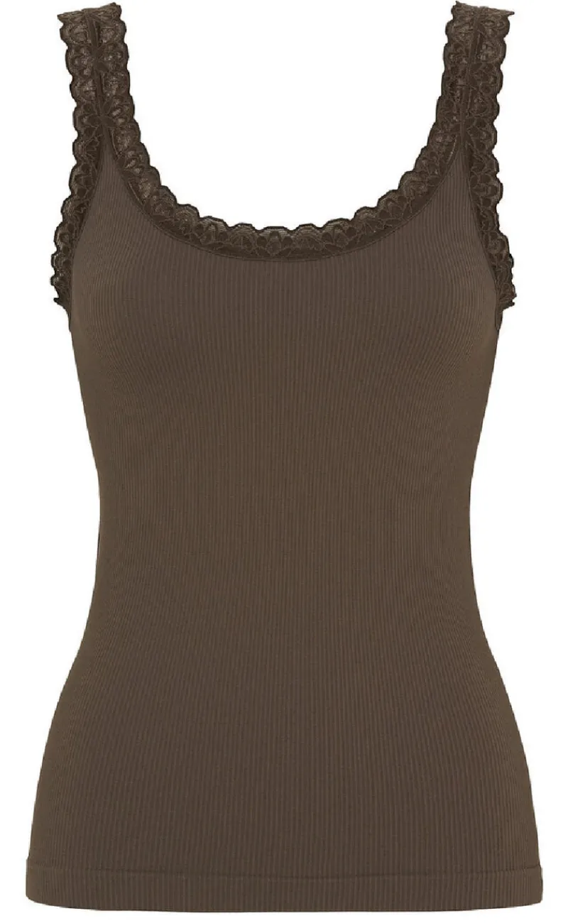 Lækker basic top med blonder fra Tim & Simonsen i brun.