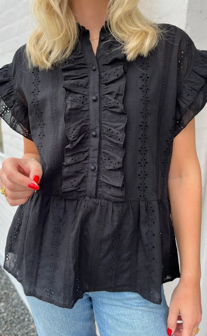 Smuk top fra INA Copenhagen i sort broderie anglaise.