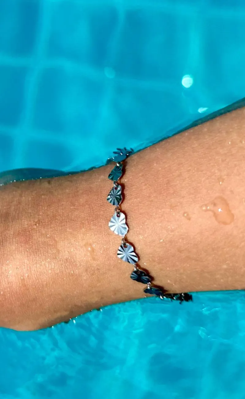 Flot ankelkæde fra Smykkeli Copenhagen i sølv med de fineste hjerte-vedhæng. Ankelkæden er både vand- og svedafvisende, så den er perfekt til sommerferien!