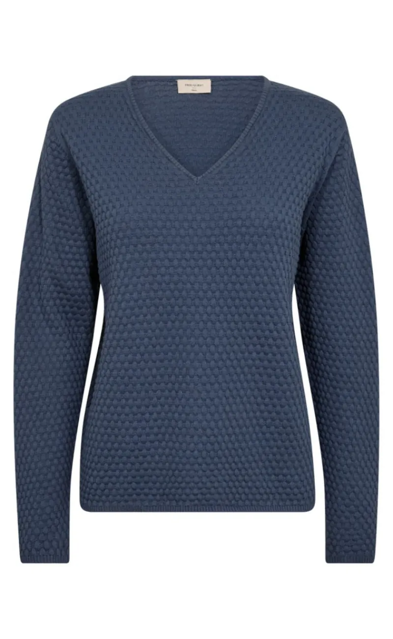Pullover fra Freequent i et blødt materiale med et prikket teksturmønster. Pulloveren har en enkel silhuet med lange ærmer, V-udskæring, ribkant og en elegant, afslappet pasform.