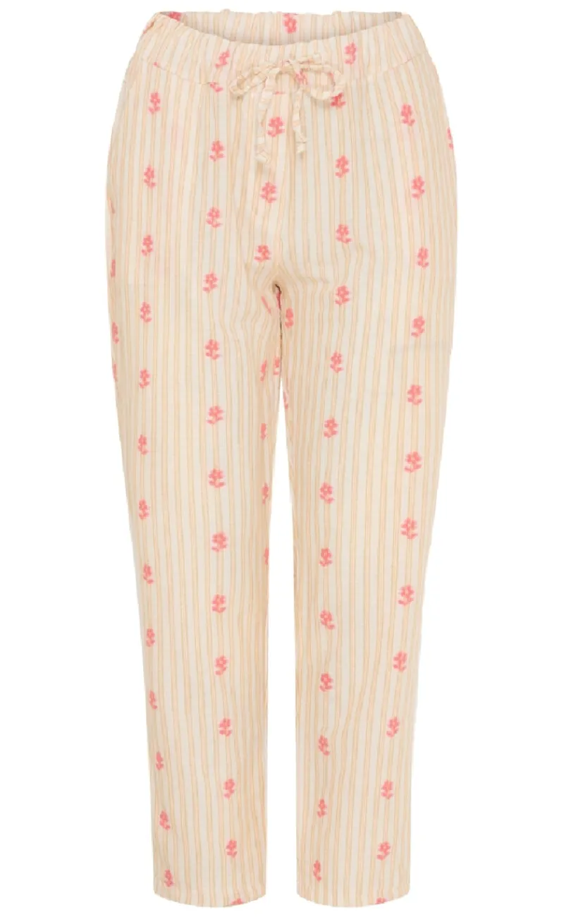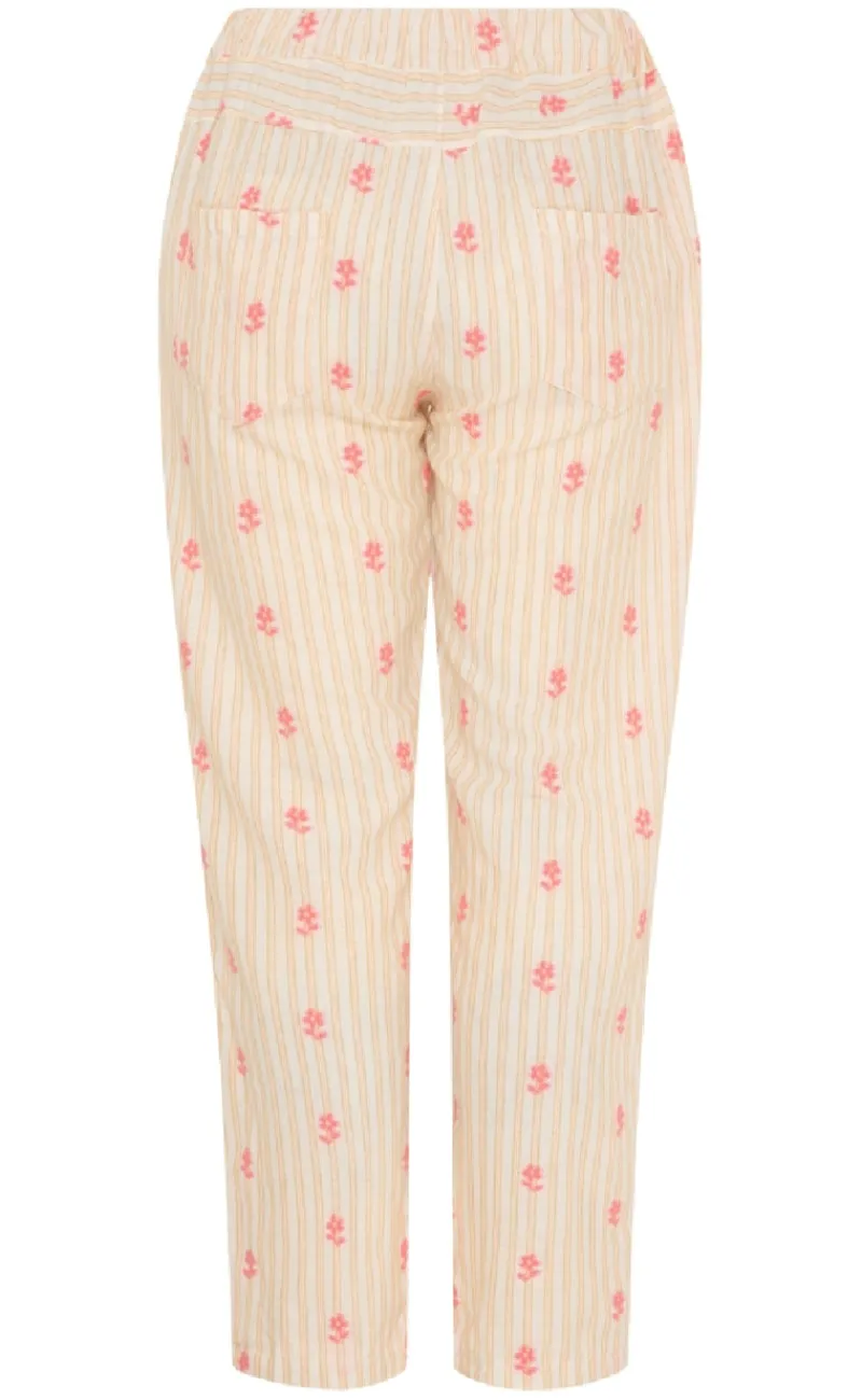 Flotte bukser fra Marta Du Chateau i et stribet print med små, broderede blomster.