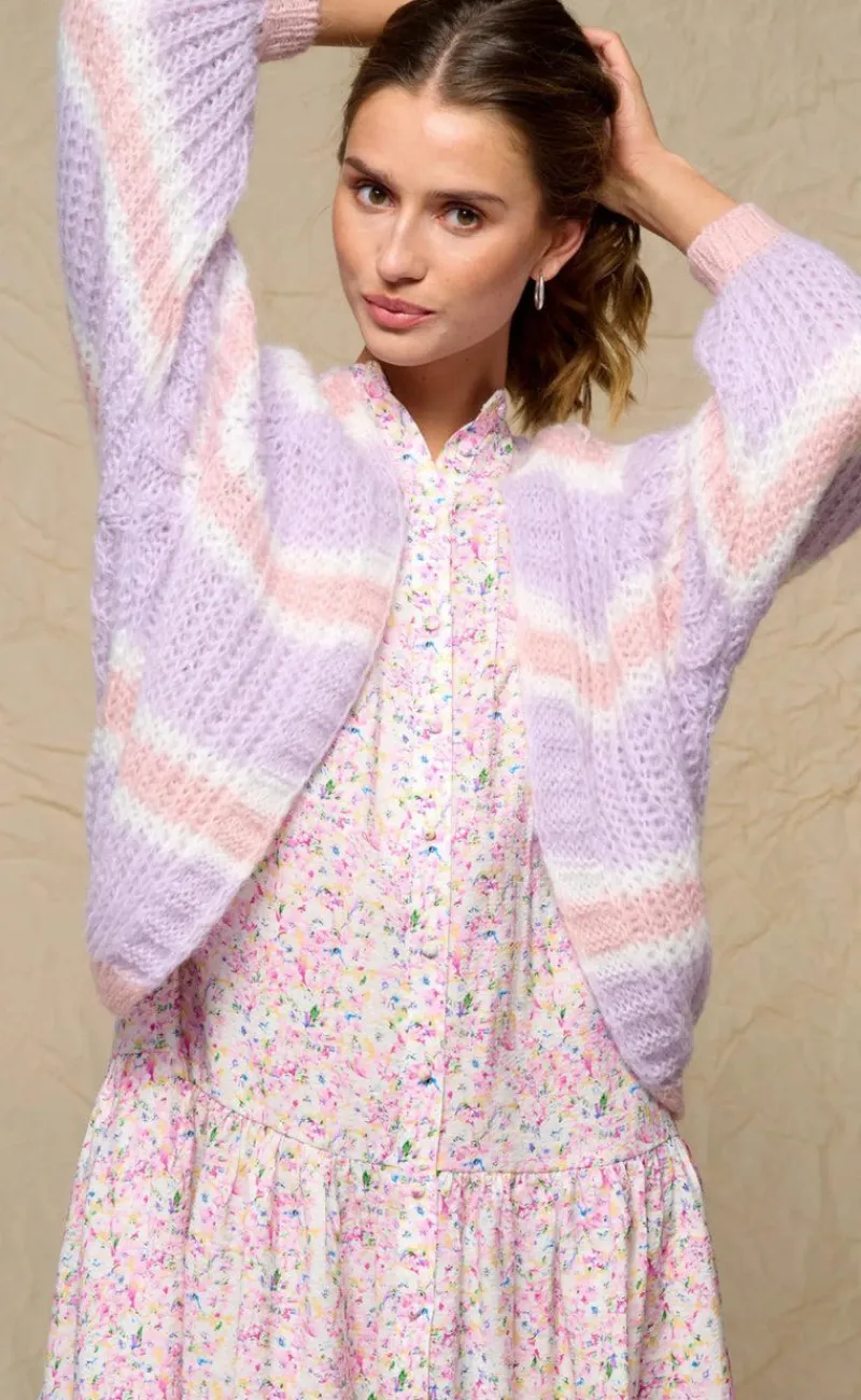 Lækker og blød strik cardigan fra Noella, med striber i flotte farver.