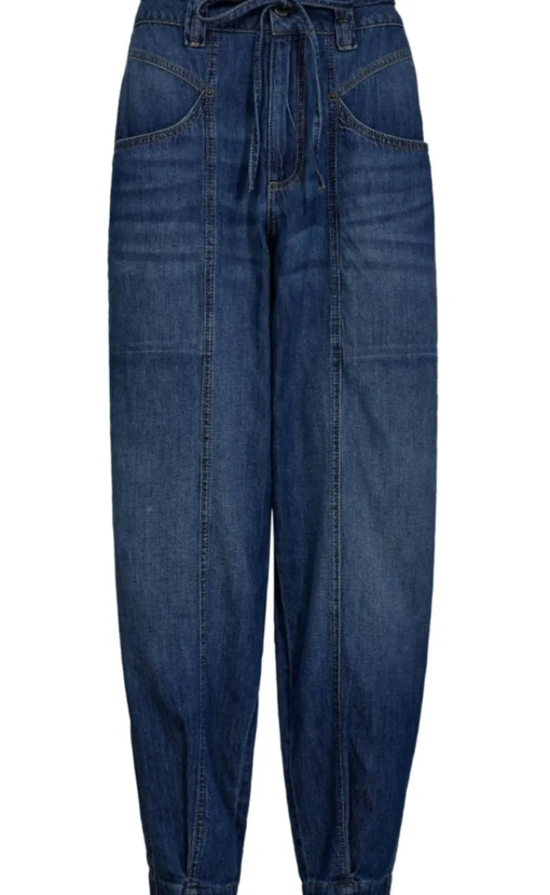 Lækre jeans i en smuk dyb blå farve og med en bindebånd i taljen.