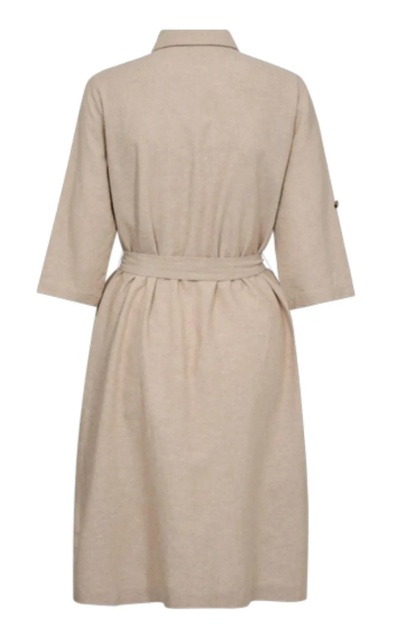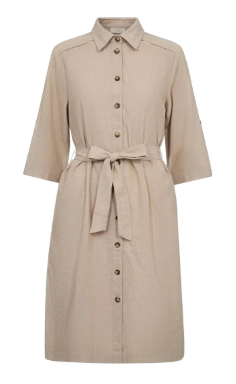 Flot hør kjole fra Freequent i sand farvet.