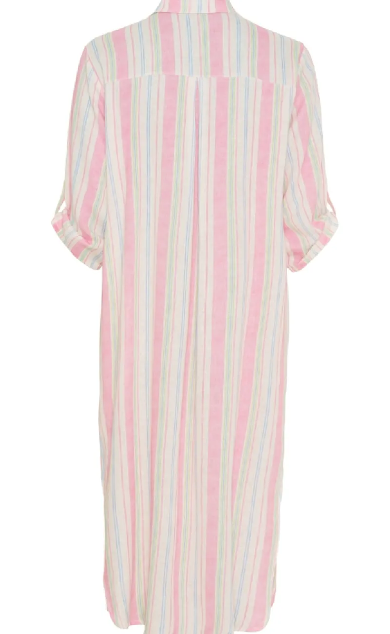 Stribet kjole fra Marta Du Chateau i nogle søde farver.