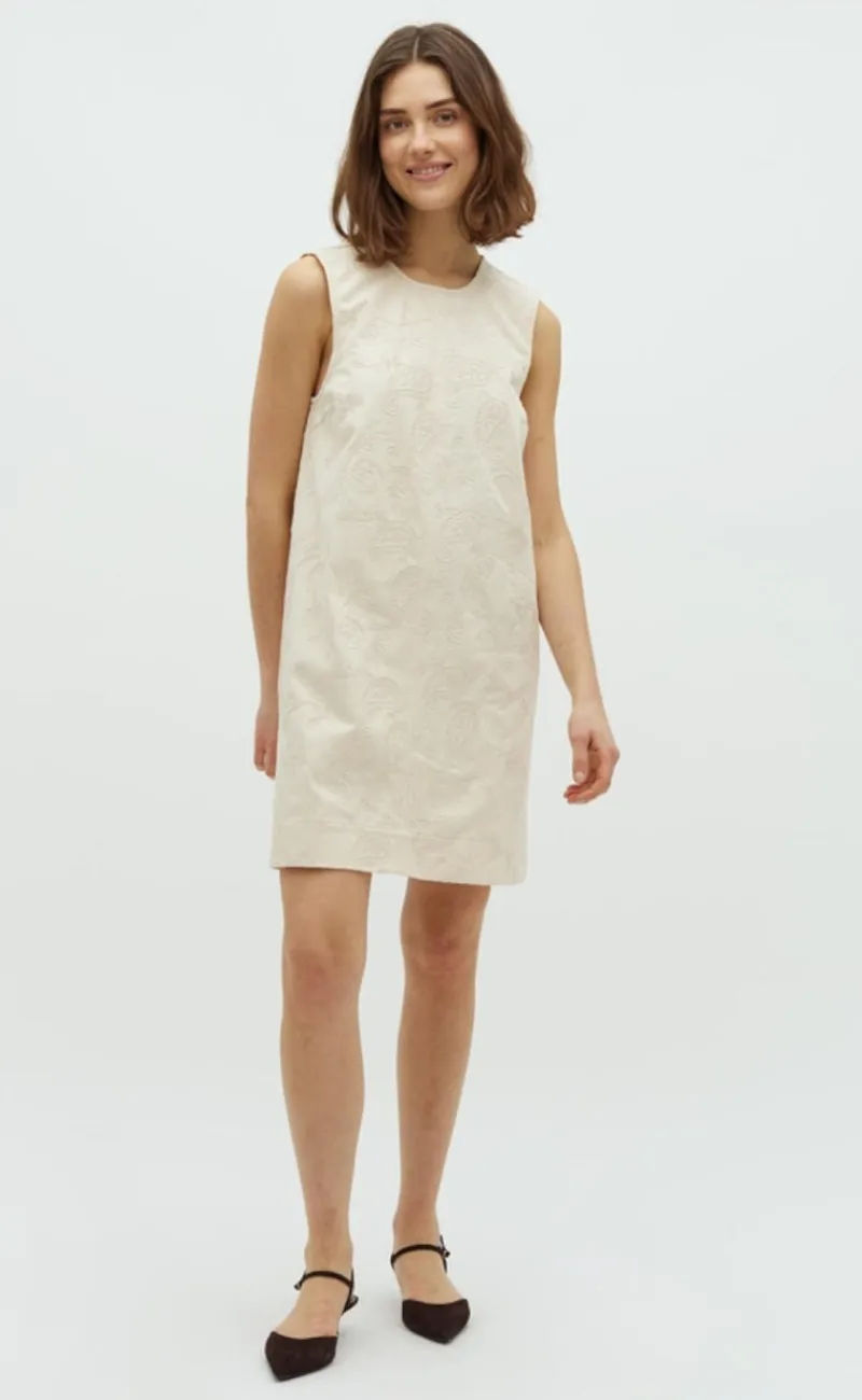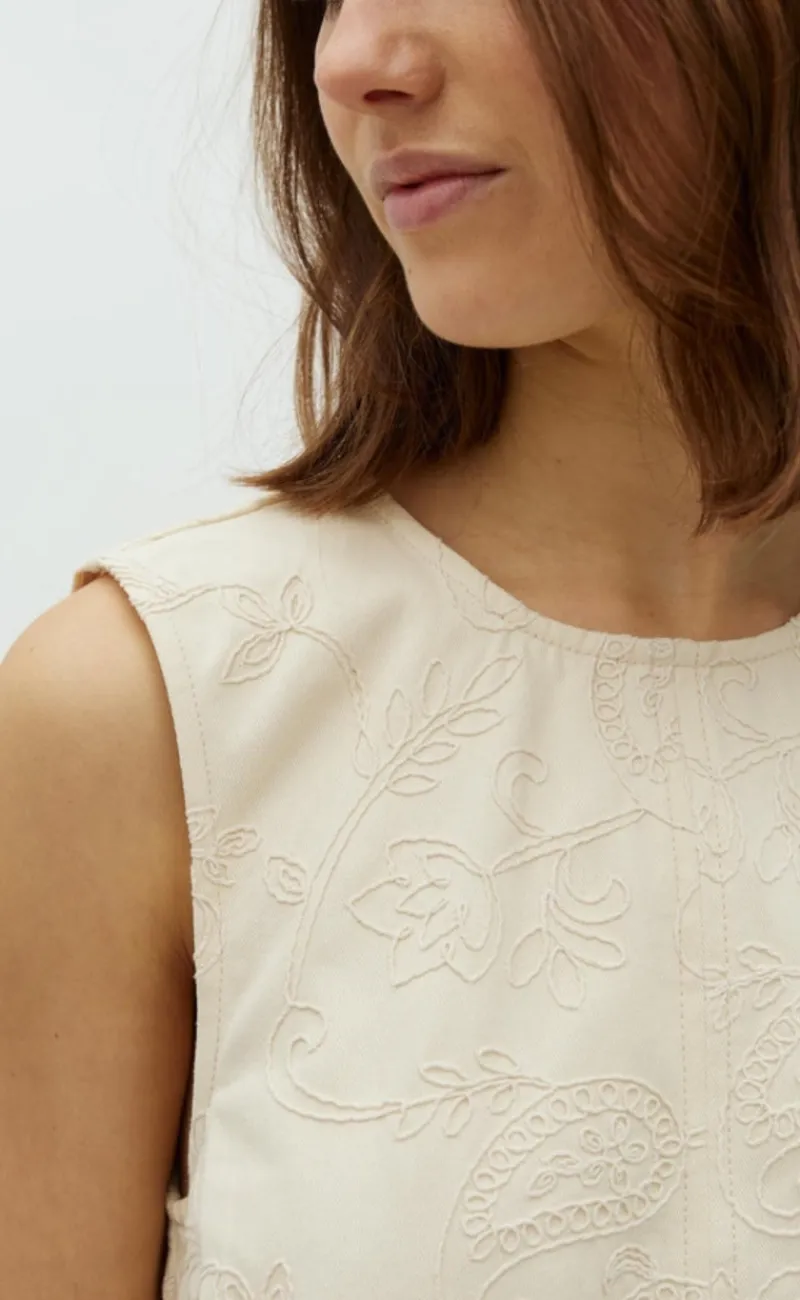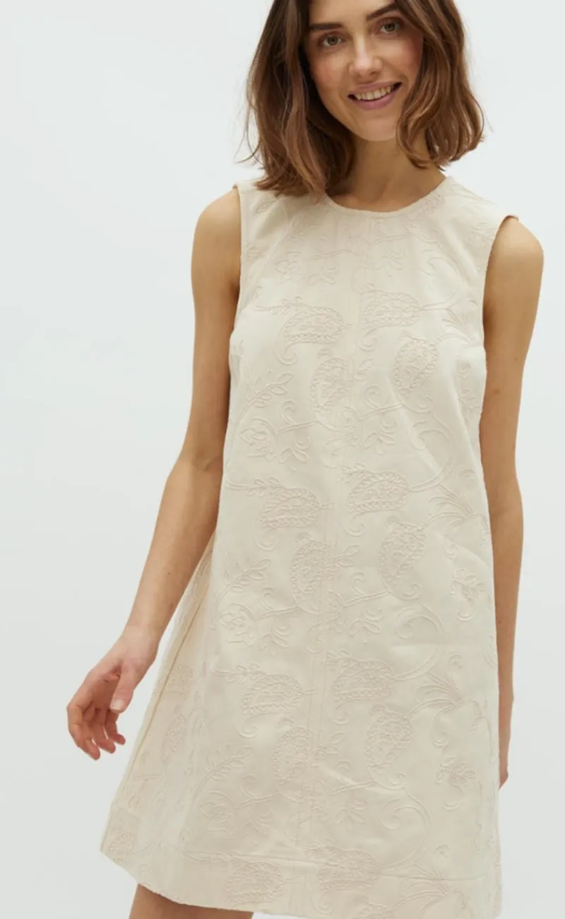 Kjolen har ingen ærmer og en smukt broderi mønster.